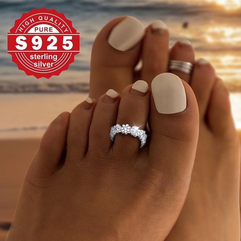 This foot ring features a sweet and lovely flower design, perfect for wearing on vacation to add a touch of forest style. Made of s925 pure silver, it's low allergy for sensitive skin.