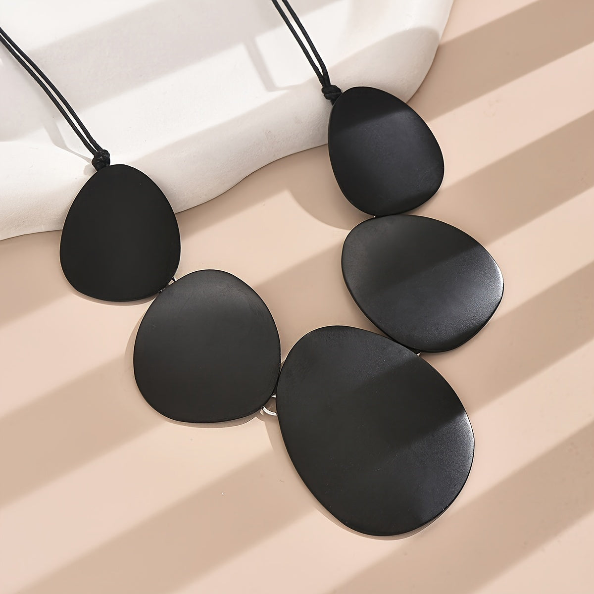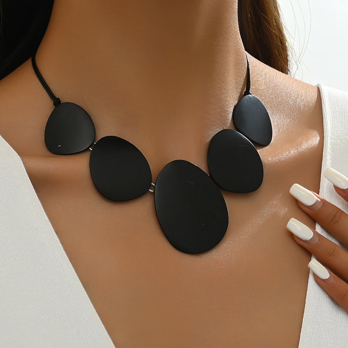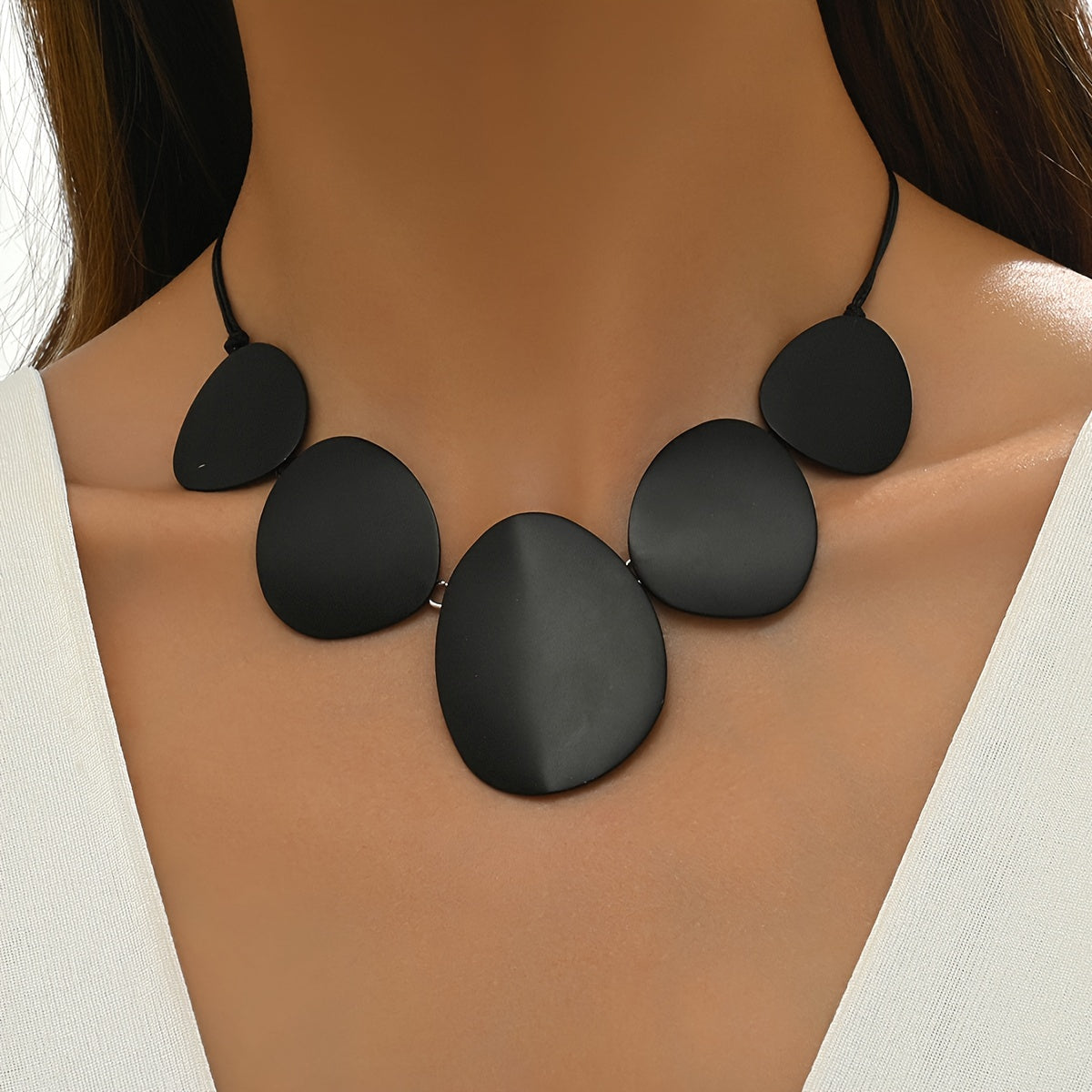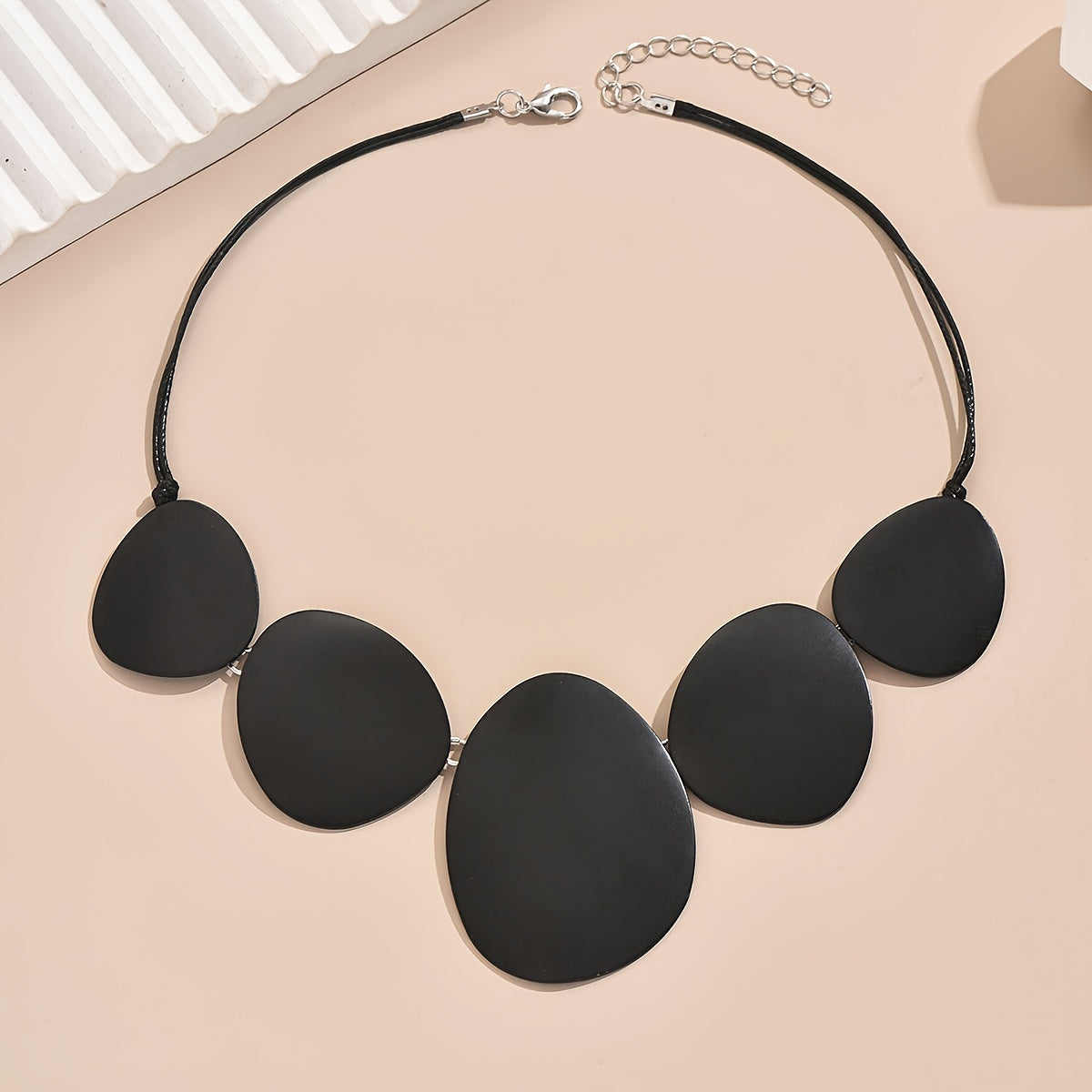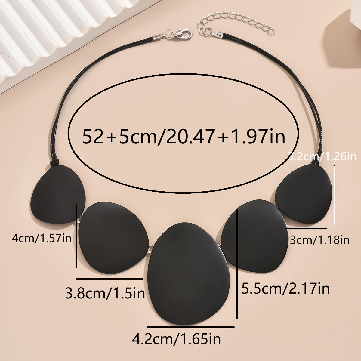 This necklace features an irregular geometric design with interconnected circles, making it perfect for everyday and formal wear. It is a versatile piece of jewelry that can be worn year-round.