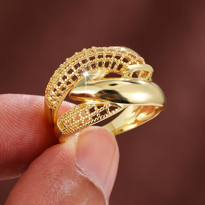 Women's Geometric Wide Band Ring Golden Plated Jewelry for Casual Attire