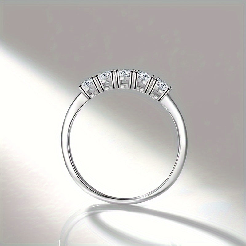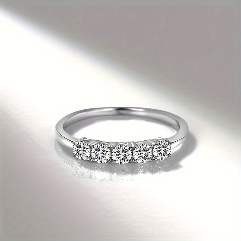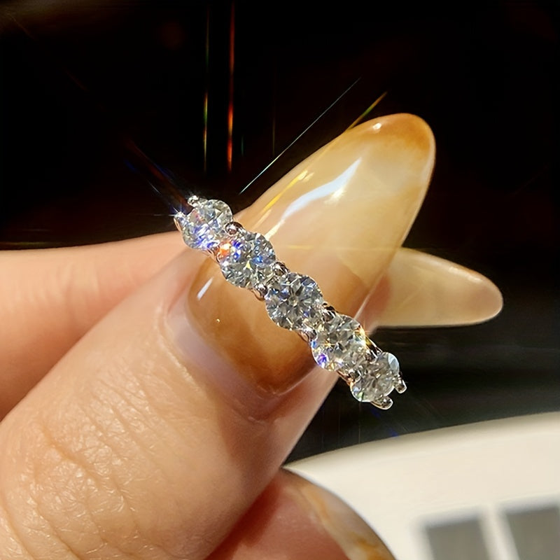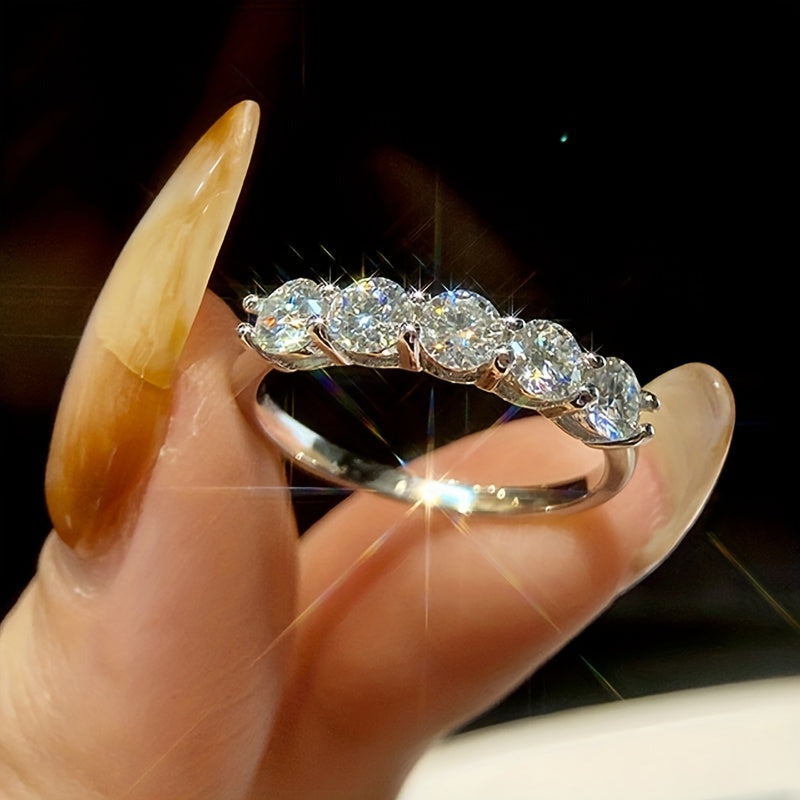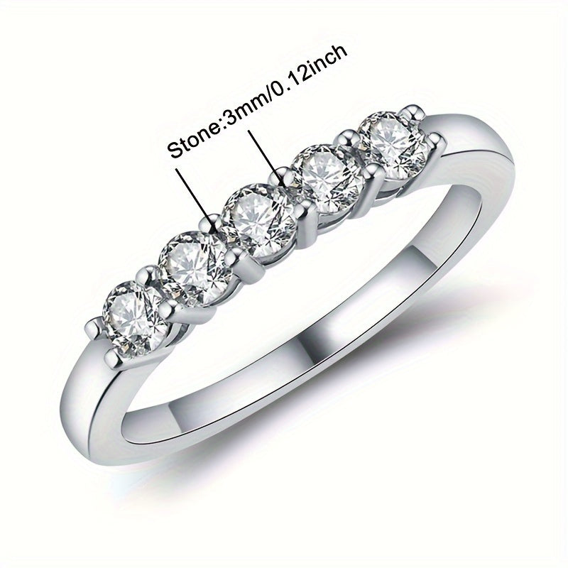 This stunning engagement ring features a romantic design with 5 round synthetic zirconia cubic zirconia stones. Made of durable and hypoallergenic copper, it is perfect for everyday wear and special occasions.