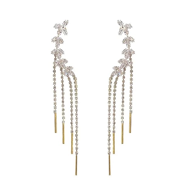 Women’s Gold Plated Cubic Zirconia Long Tassel Cuff Earrings