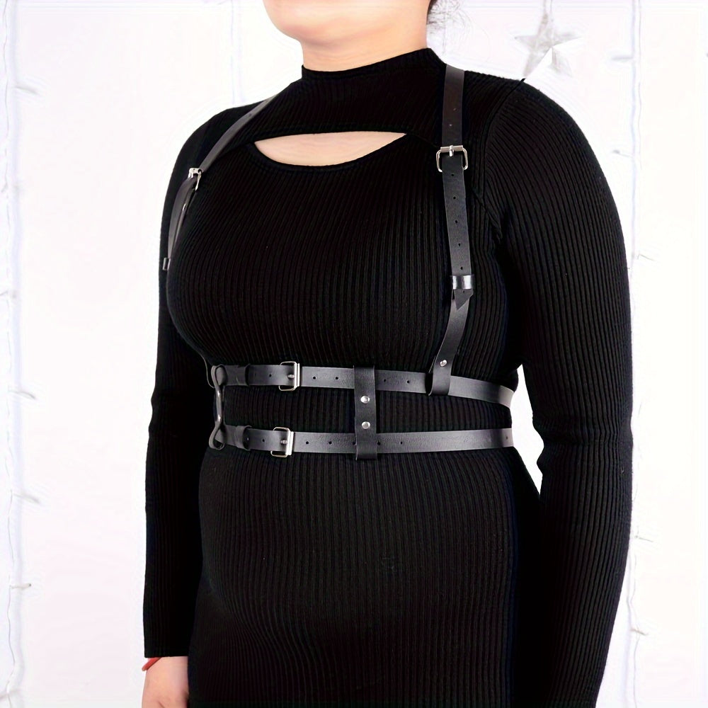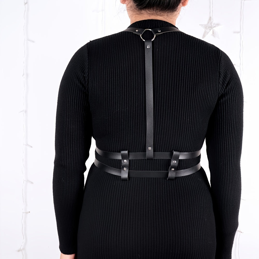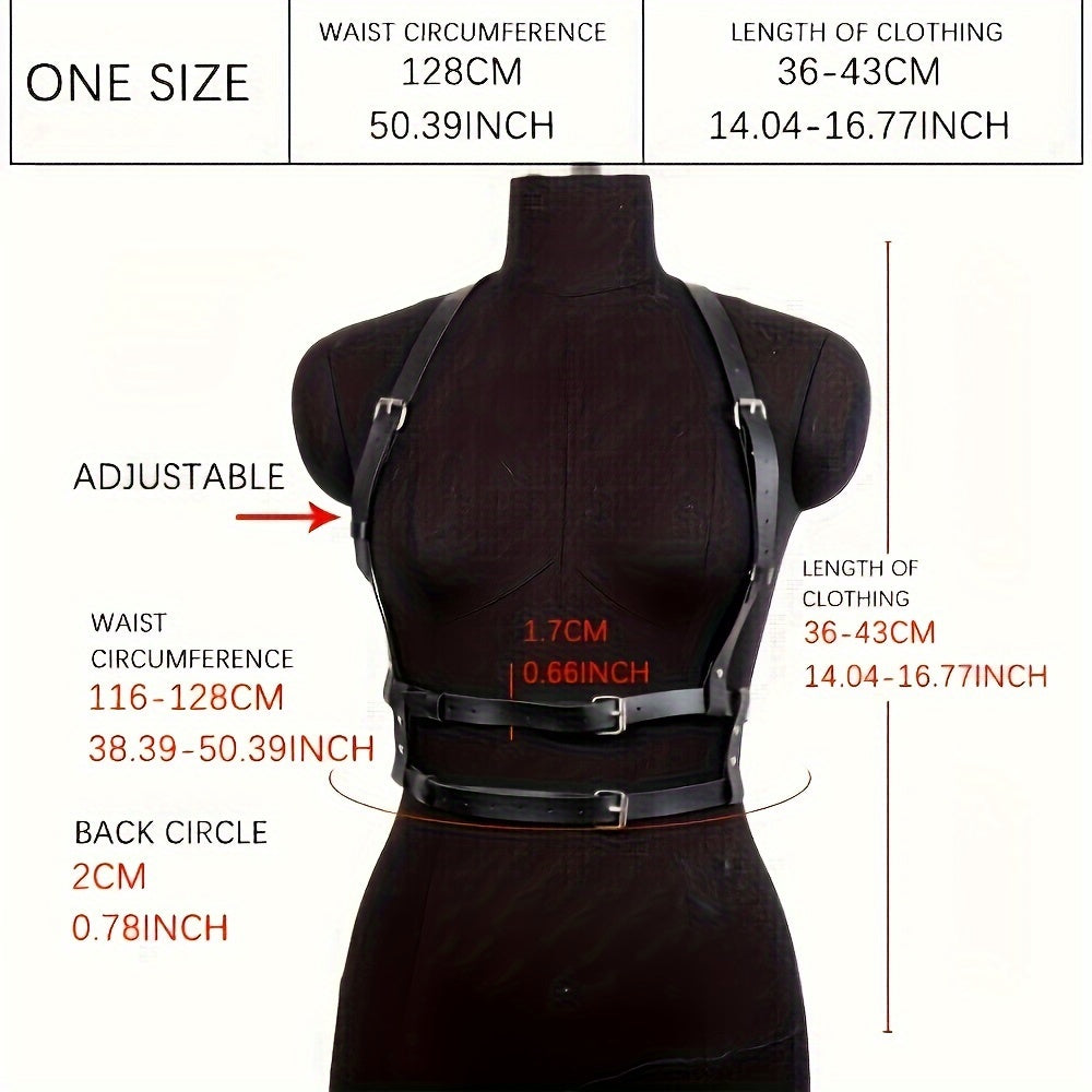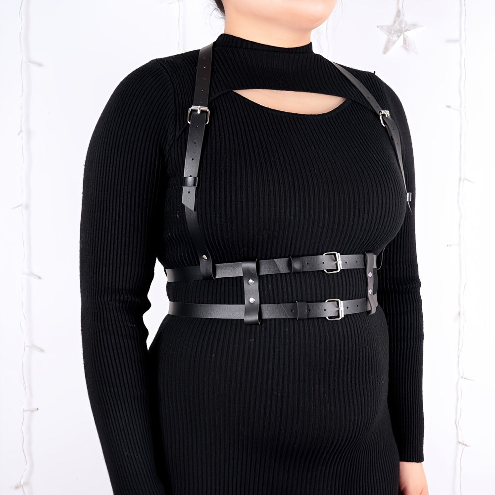 Add an edgy touch to your outfit with this non-textile weave harness belt. Perfect for a night out, wedding party, or casual weekend look.