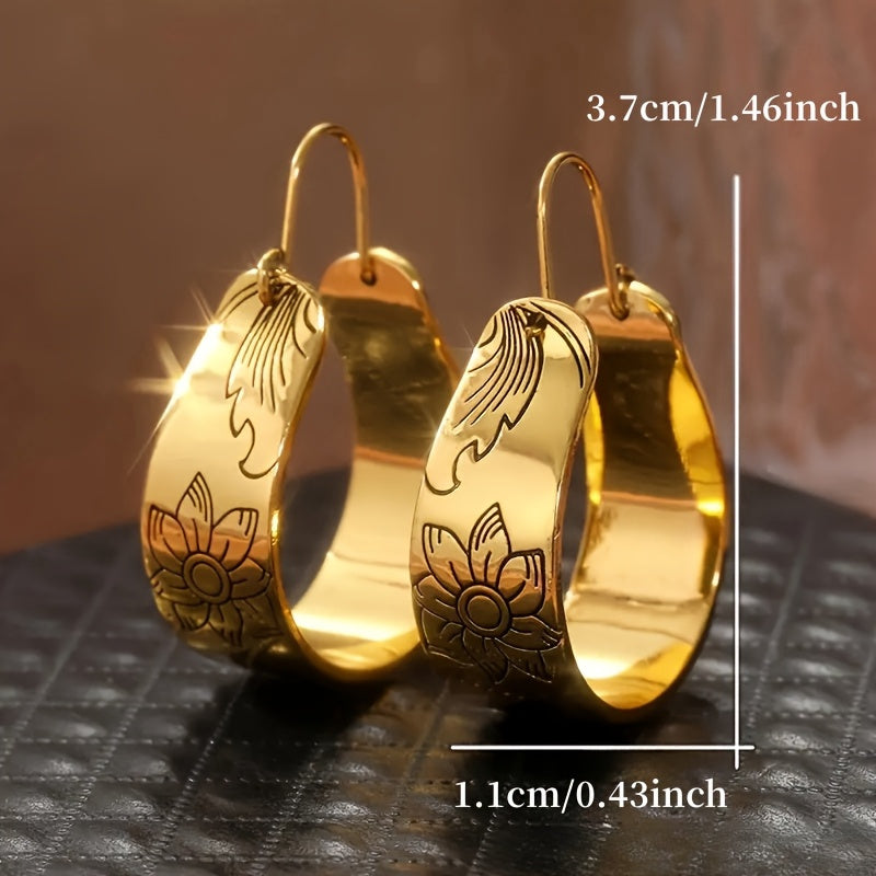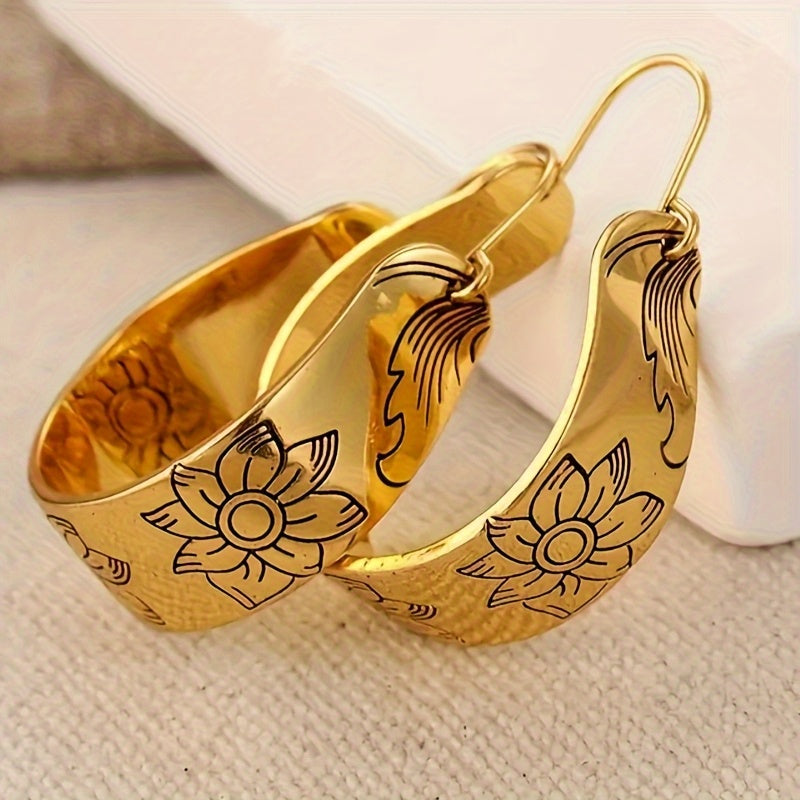 These middle eastern style hoop earrings are beautifully carved with a lotus flower design, perfect for daily casual wear or special occasions.