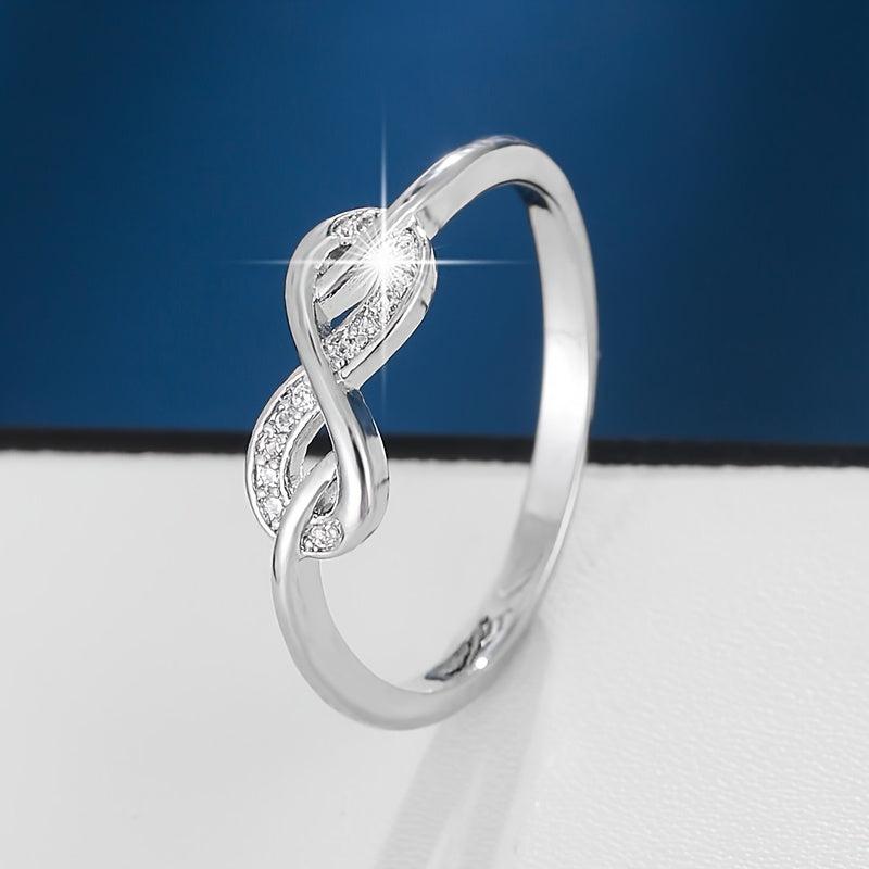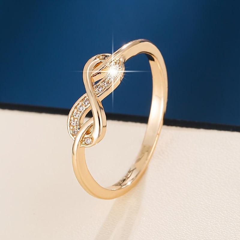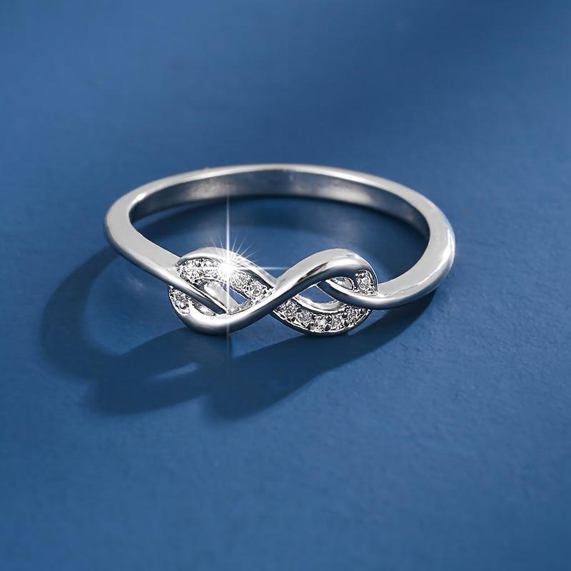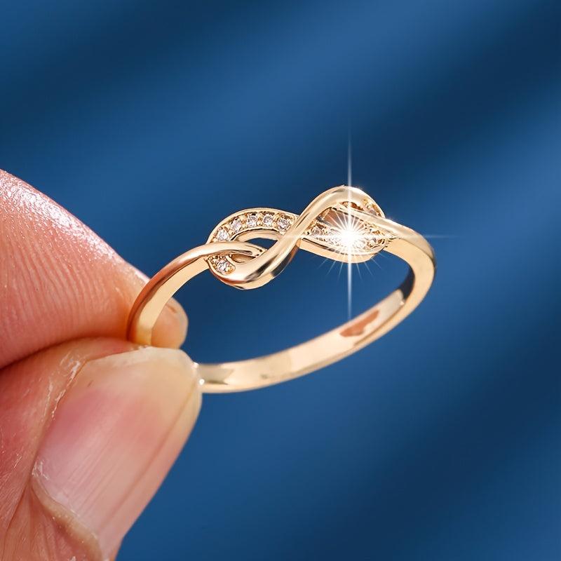 Add a touch of sparkle to your everyday look with this digital women's ring featuring synthetic zirconia stones and a knot pattern on a copper band.