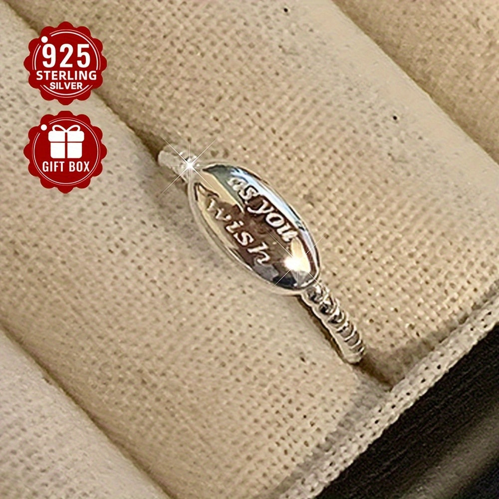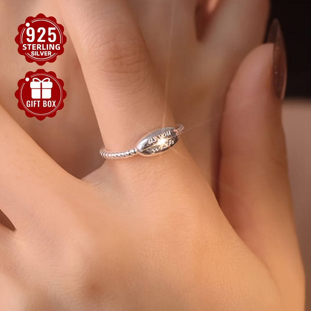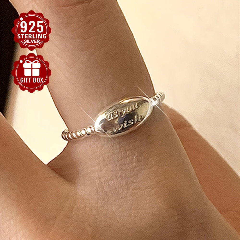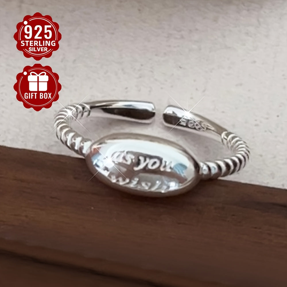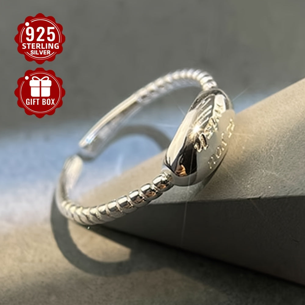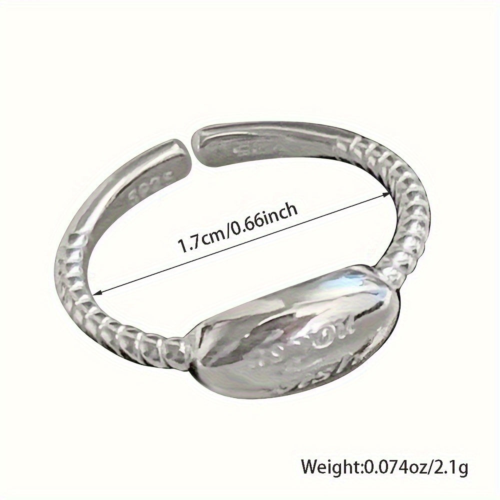 This open ring features an oval design with a letter detail, made of 925 pure silver. It is adjustable and suitable for daily outings and parties. Perfect for gift giving.