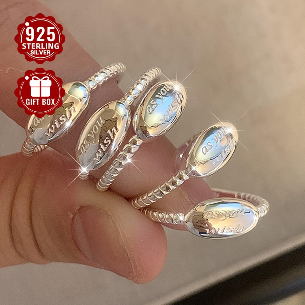 Women's Open Ring 925 Silver Oval Letter Adjustable Ring - Small S