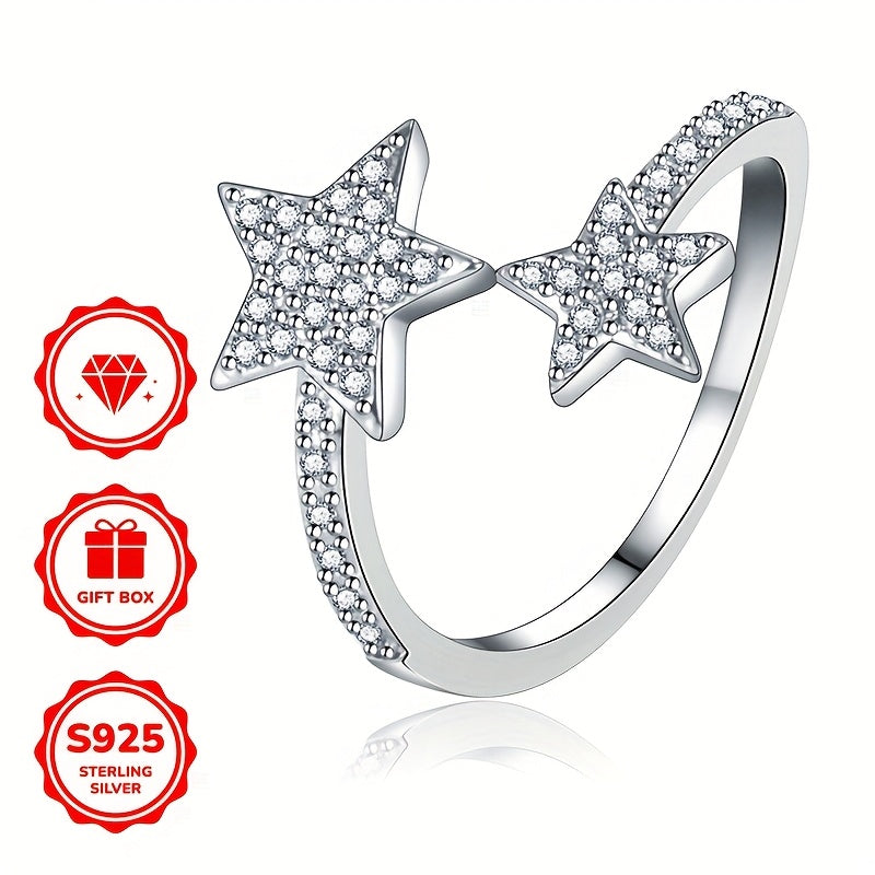 This minimalist open ring features a sparkling star-shaped CZ zirconia. It's perfect for everyday casual wear.