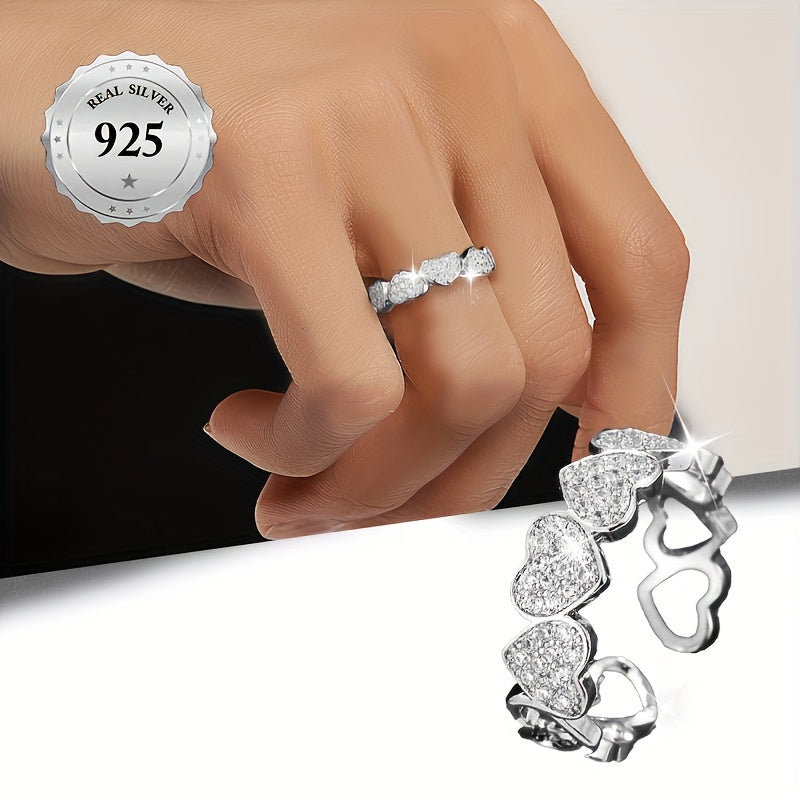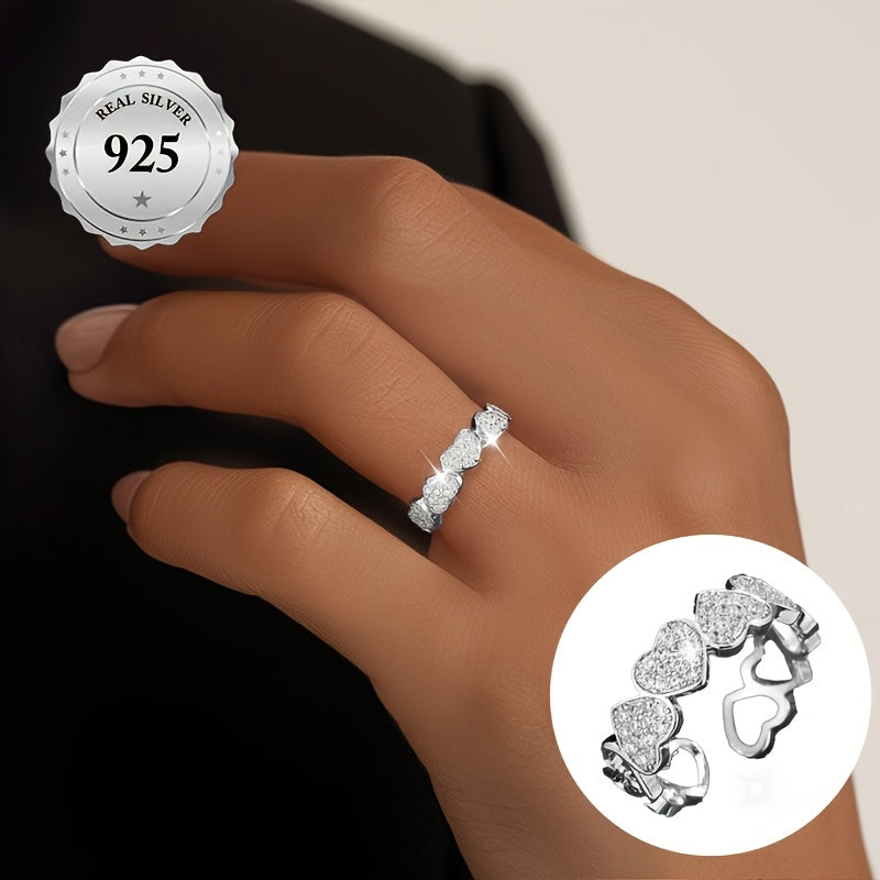 Women's Open Ring Surprise Gift Solid Cubic Zirconia S925 Silver