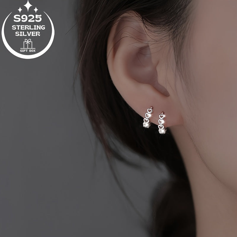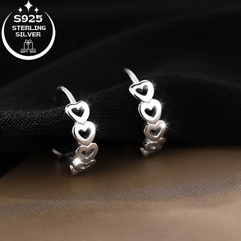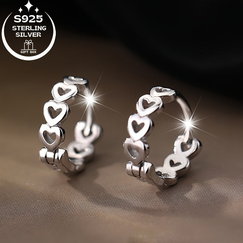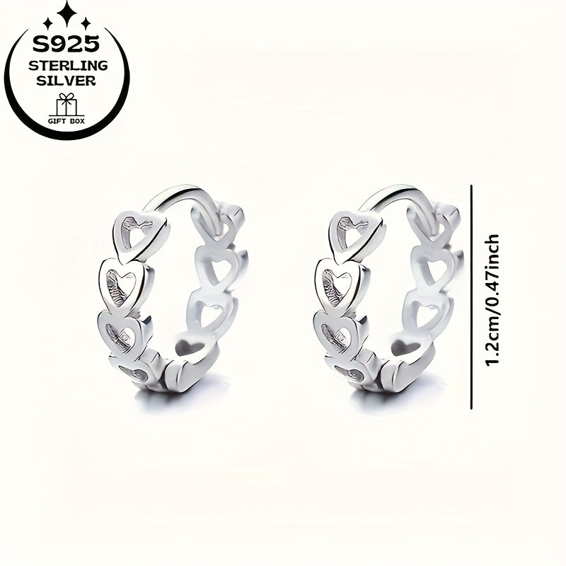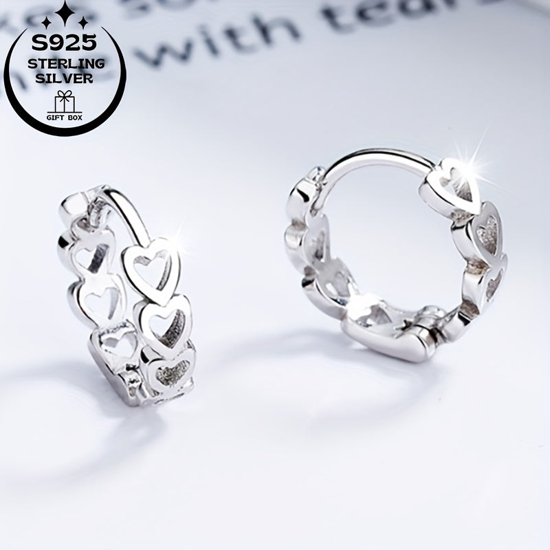 Women's Rings & Earrings Set - Romantic Hollow Heart Earring Hoops 925 Silver