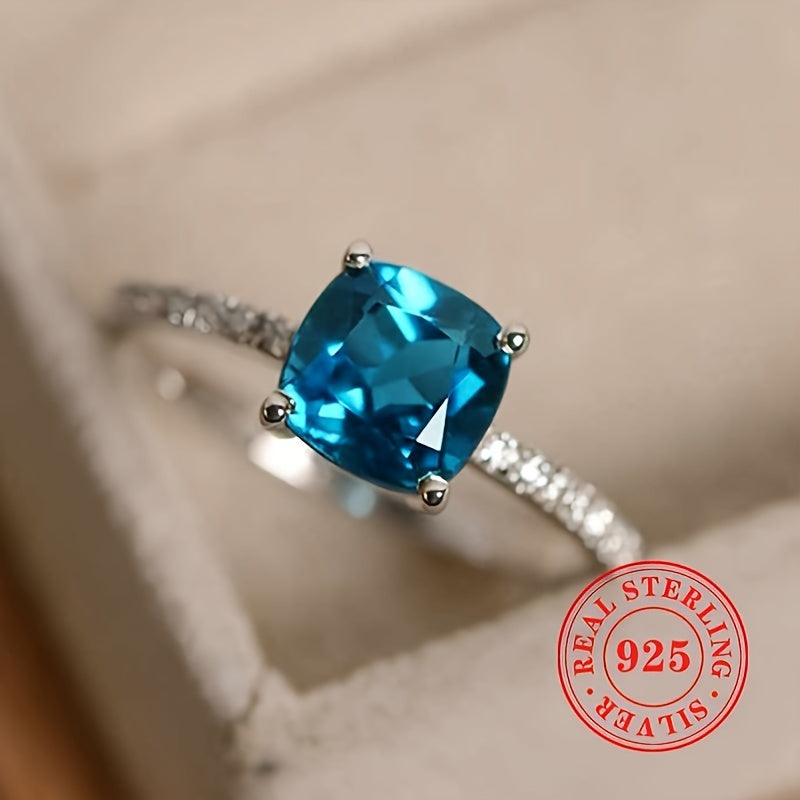 Elegant engagement ring made of S925 sterling silver with synthetic gemstone, perfect for casual wear and weddings.