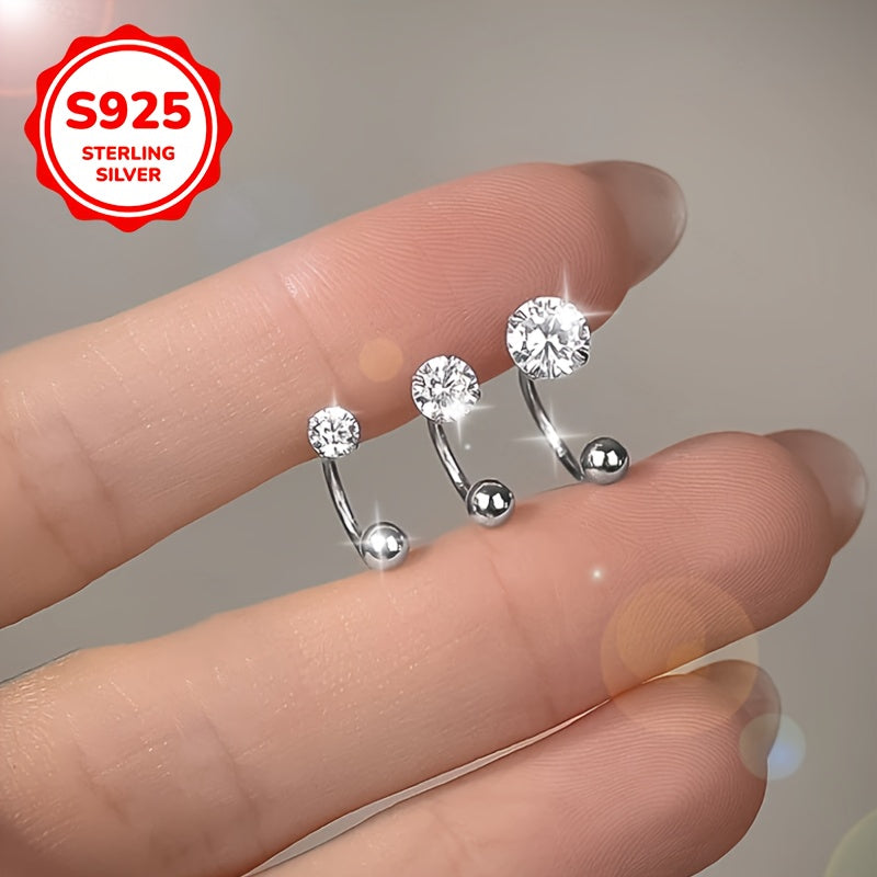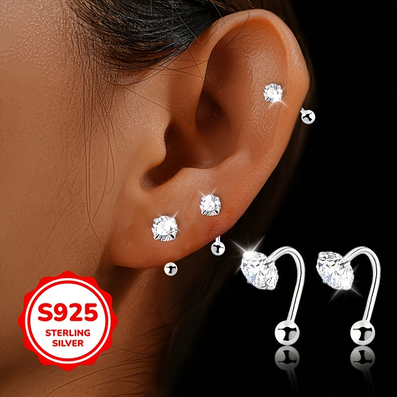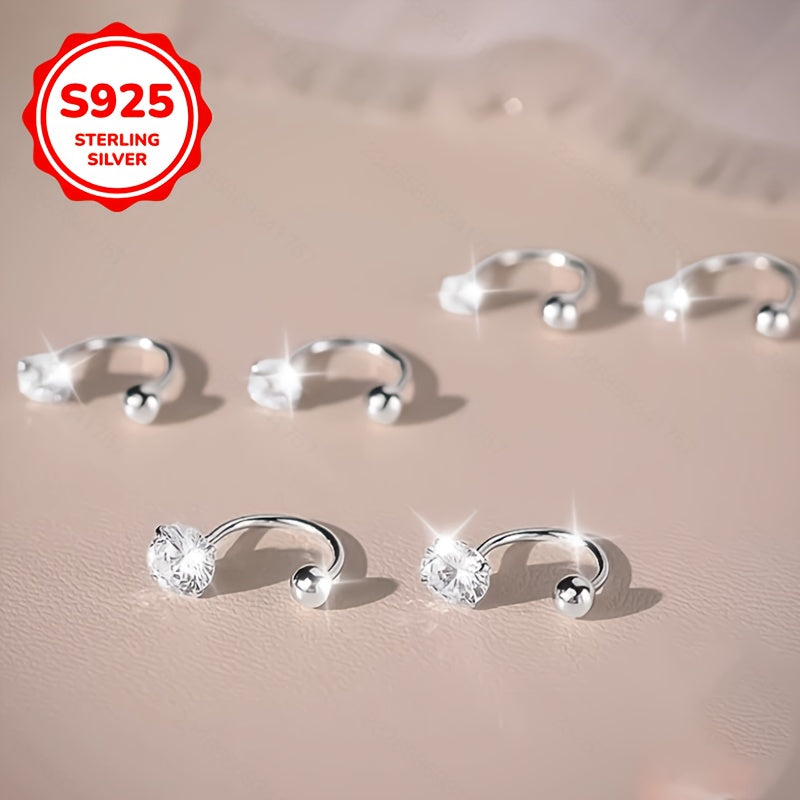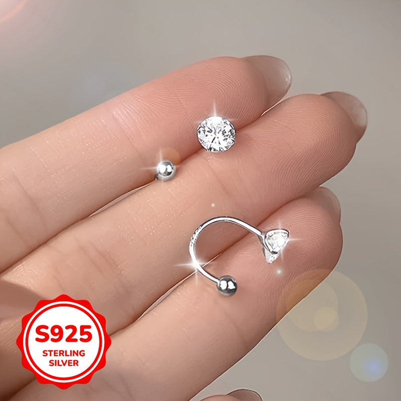 Add elegance to your look with these versatile silver stud earrings featuring synthetic cubic zirconia. Perfect for any occasion.