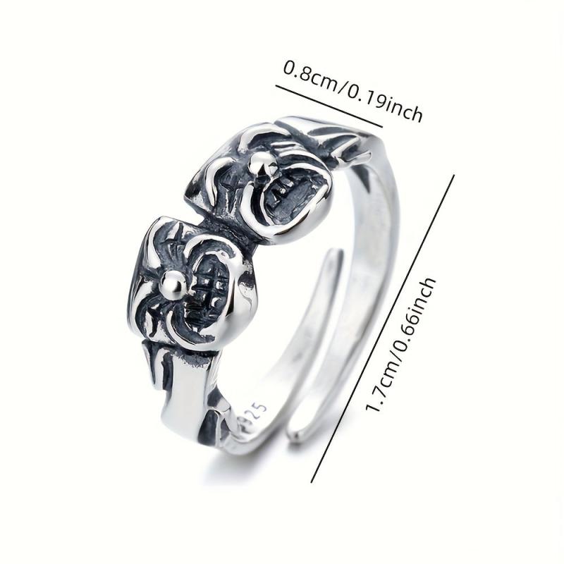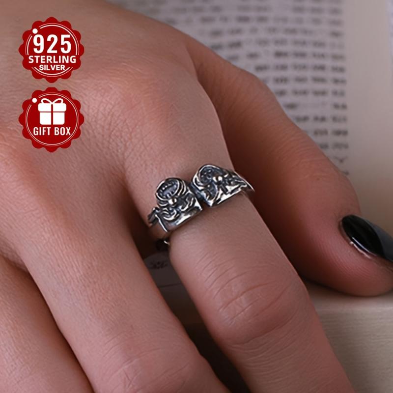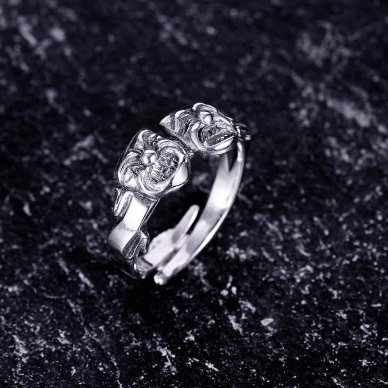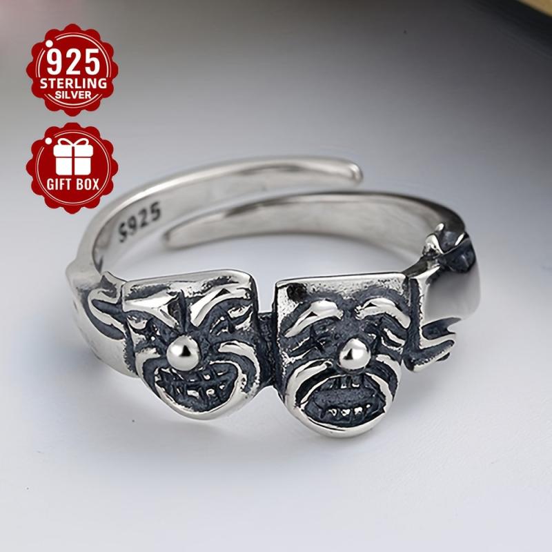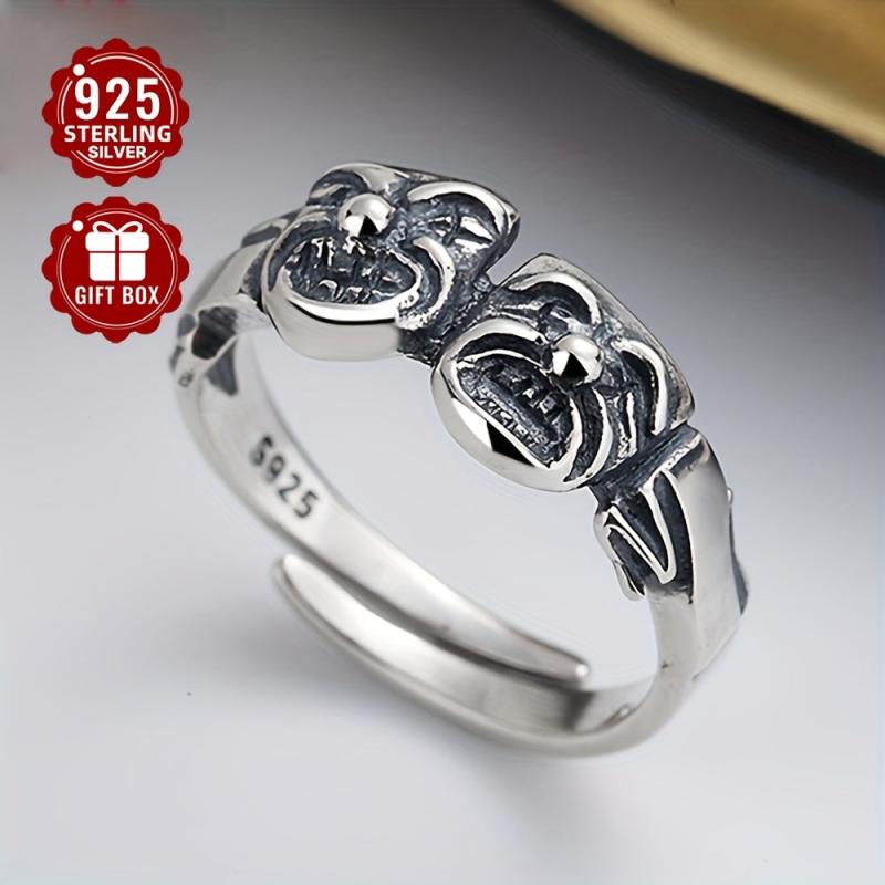 This open ring features a unique double-sided clown face design, adding a touch of street vintage punk style to your look. Crafted from high-quality S925 sterling silver, this distressed band is suitable for daily wear.