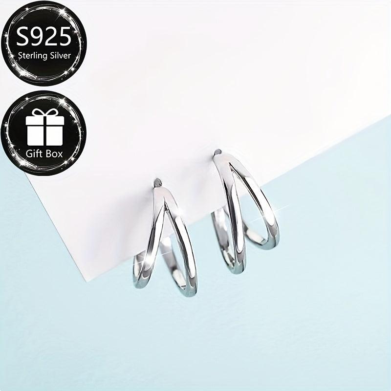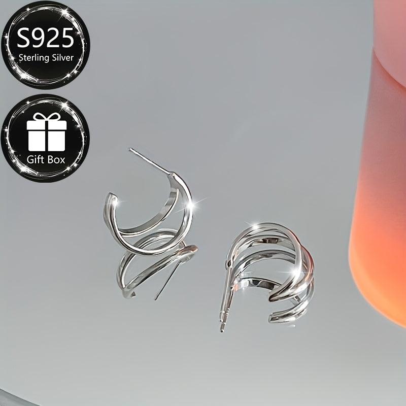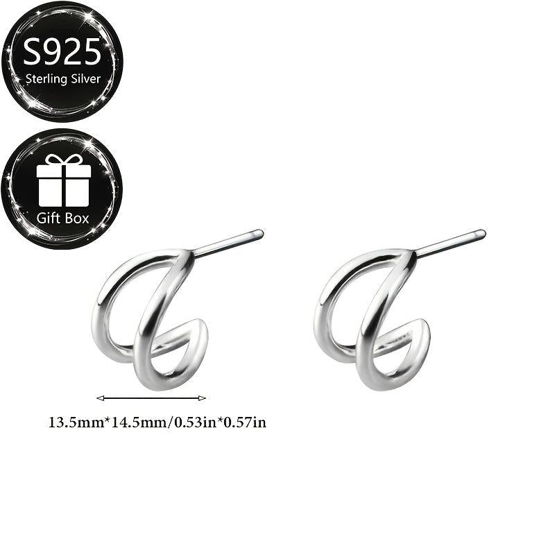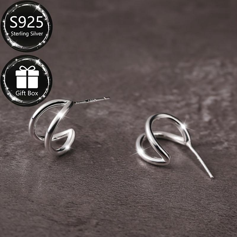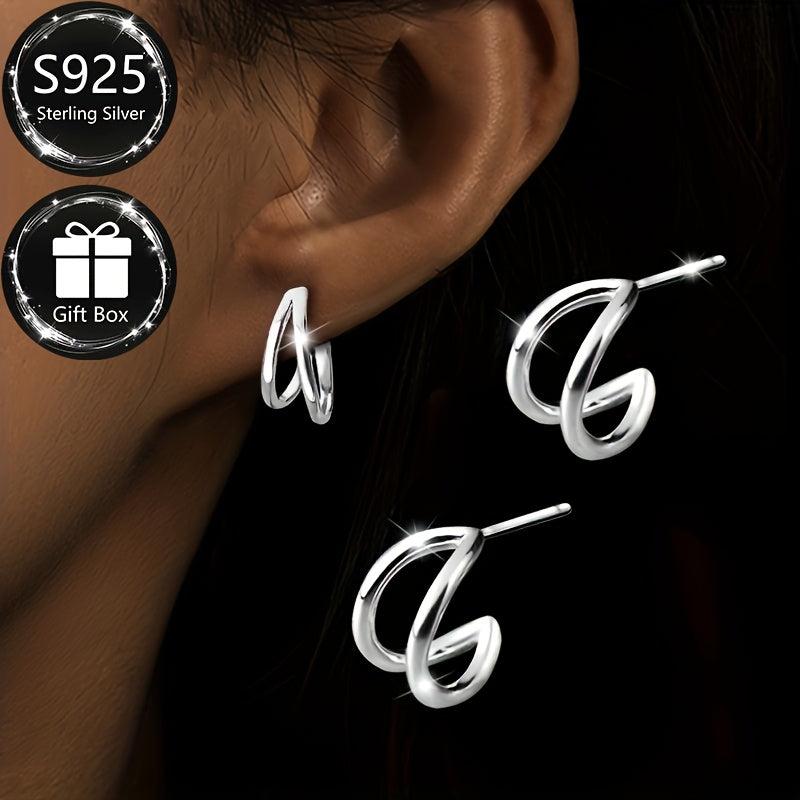These trendy women's earrings feature a curved hook design made of S925 sterling silver. They are suitable for daily wear, crafted with electroplating to resist oxidation and ensure long-lasting style.
