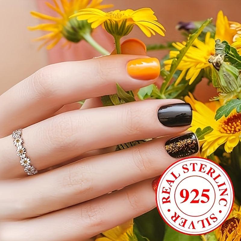 This fashionable ring features a synthetic yellow zirconia daisy flower design, making it a stunning and stylish piece of floral jewelry for ladies.