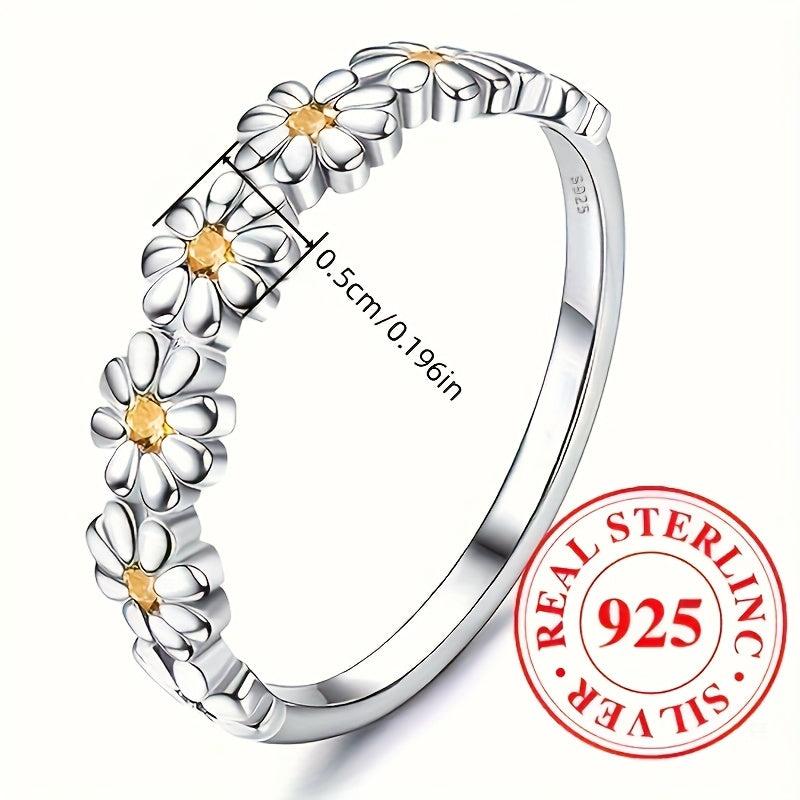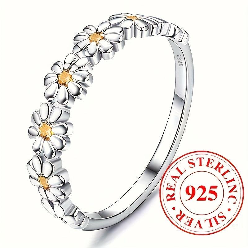 Women's S925 Sterling Silver Yellow Zirconia Daisy Flower Ring