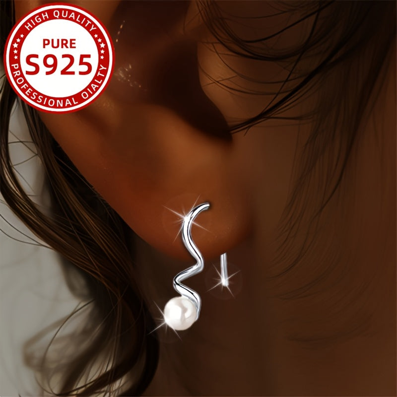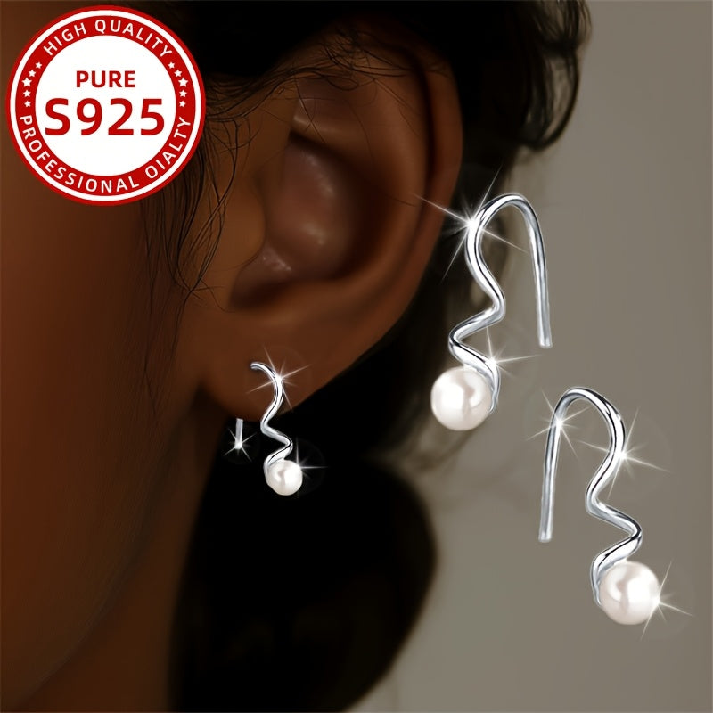 Women's Spiral Hoop Earrings 925 Silver Bead Inlay Daily Wear Parties Vacation