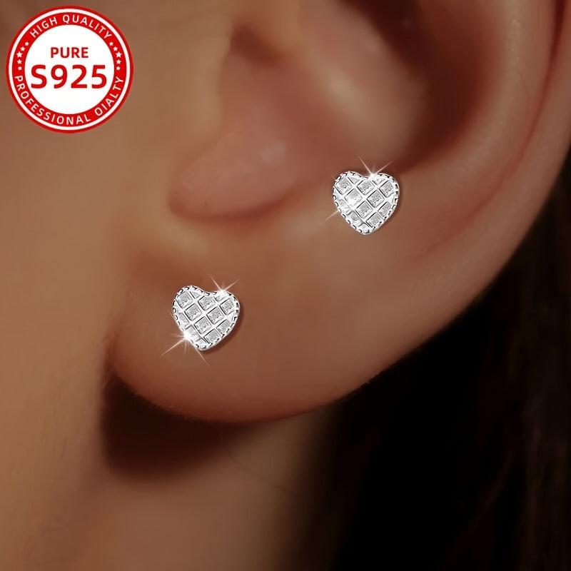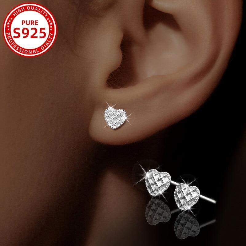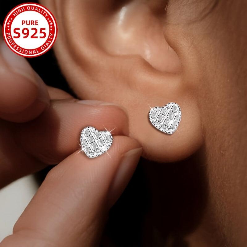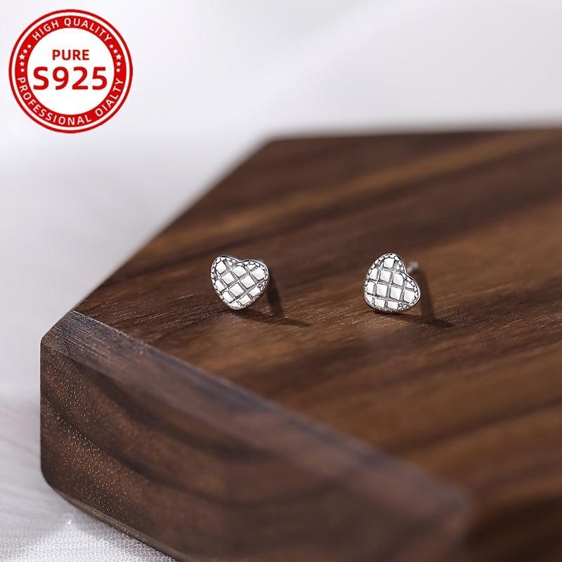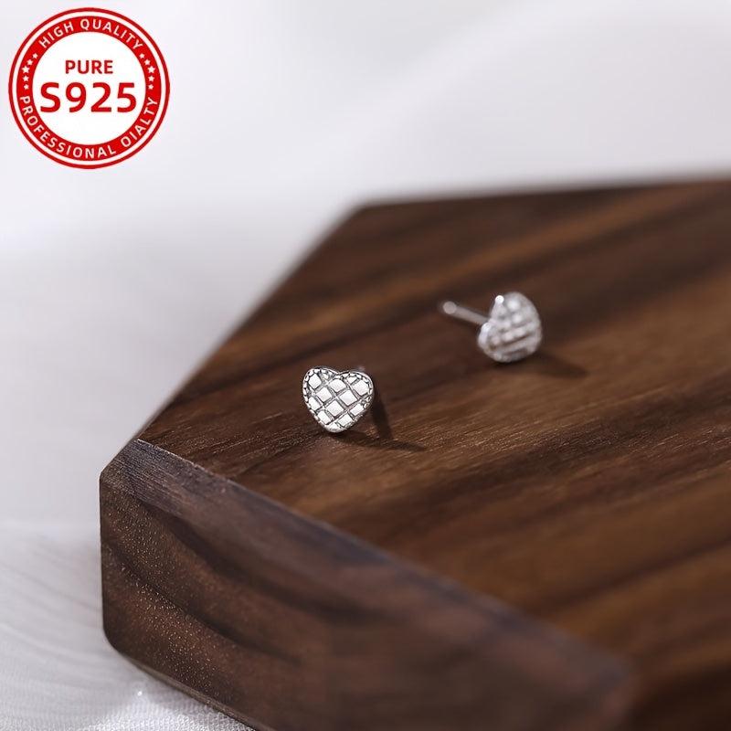 These stylish stud earrings feature a quilted heart design crafted from high-quality 925 sterling silver. Perfect for daily wear, parties, and vacations.
