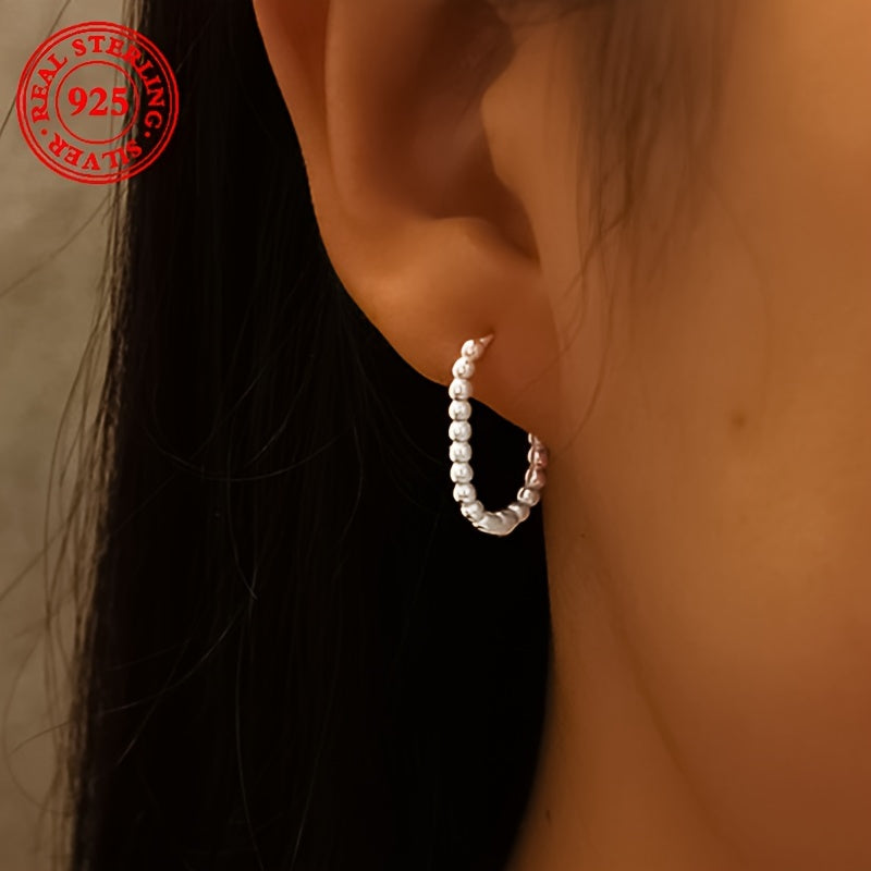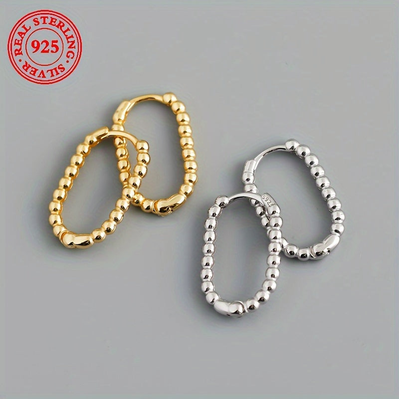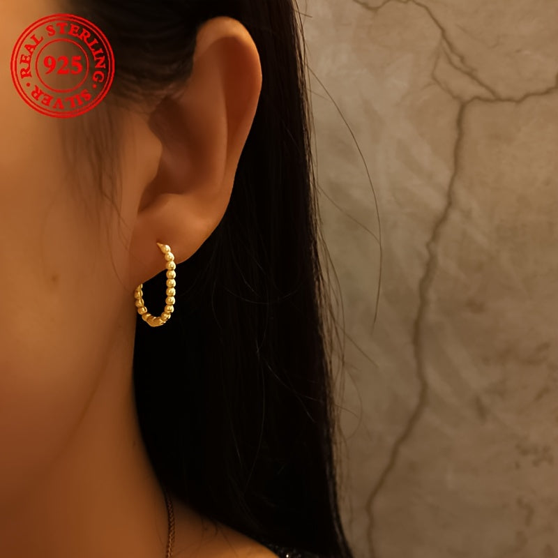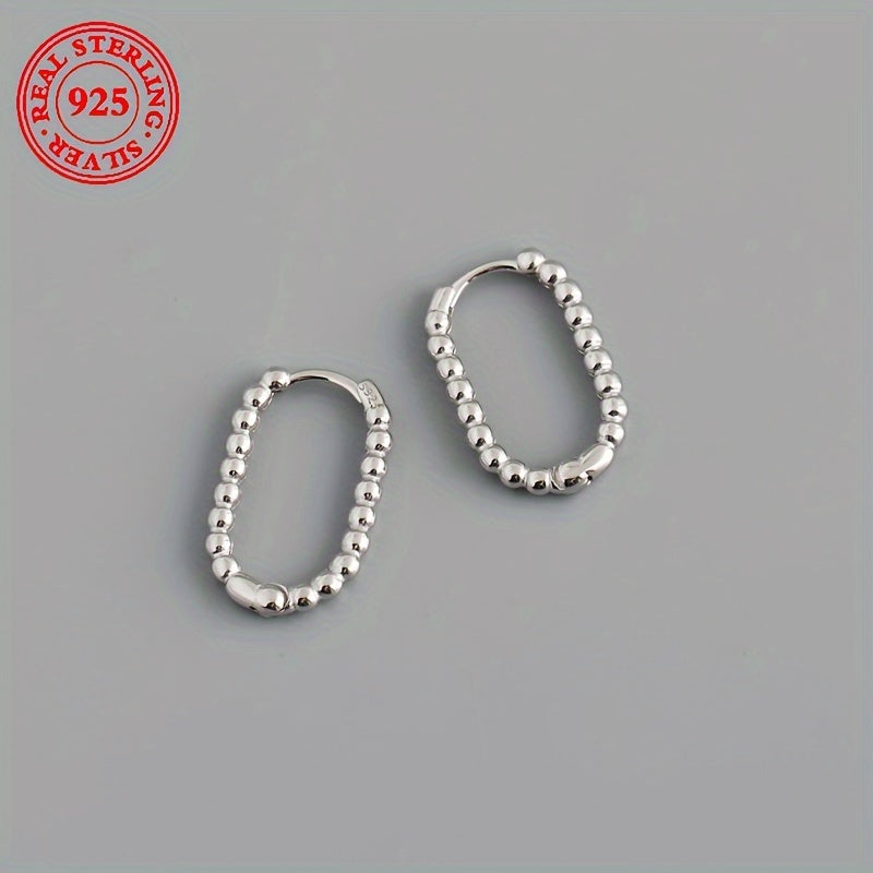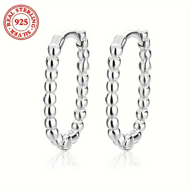 Women's Stylish Hoop Earrings Beads 925 Silvery 2 3g