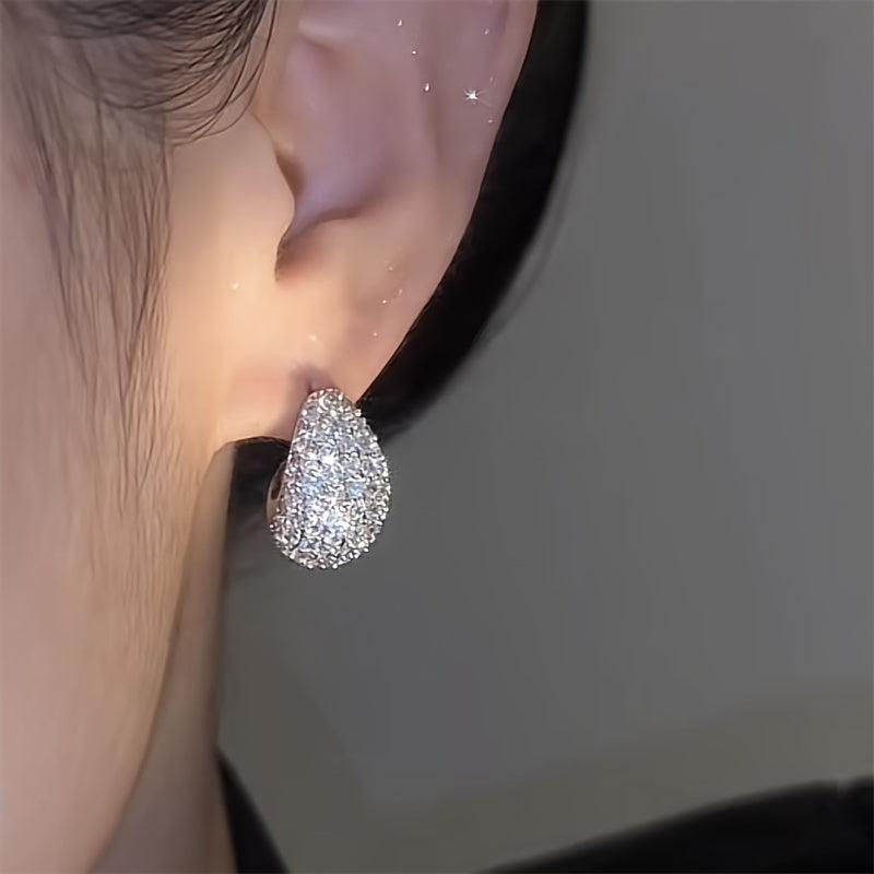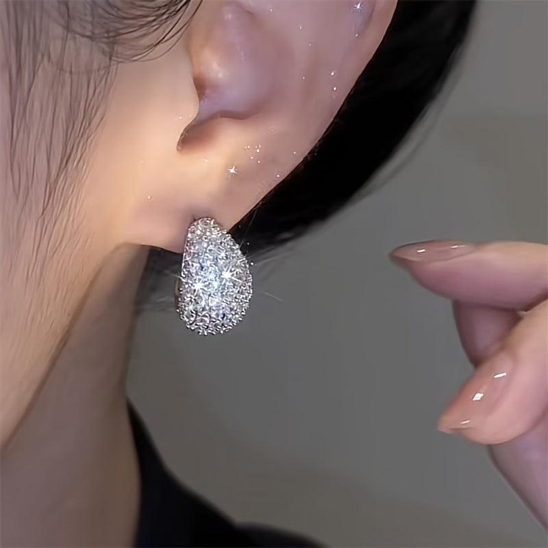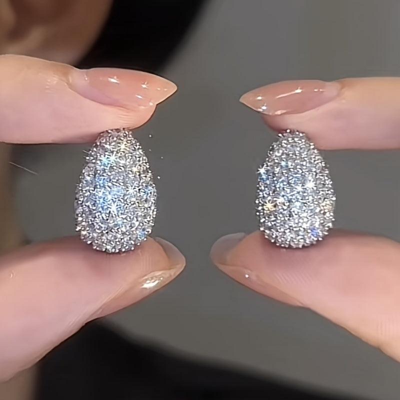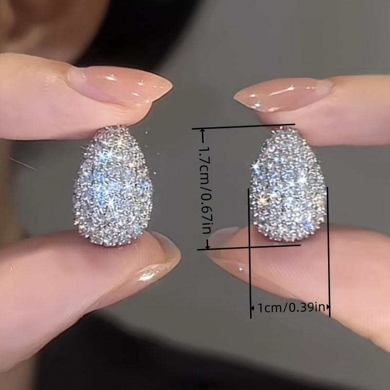 Elegant pair of teardrop stud earrings featuring sparkling synthetic zirconia, perfect for party, wedding, or everyday casual attire.