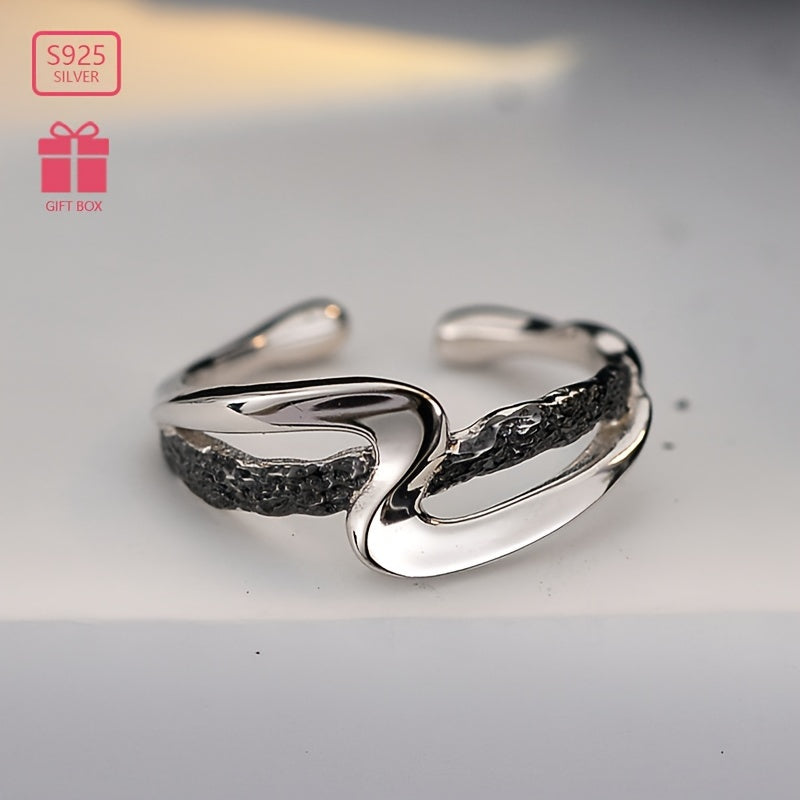 This open ring features a crinkled texture shaped style, weighing 2.5 grams. Made of high-quality 925 silver, suitable for daily wear and versatile for any occasion. A perfect gift for mothers.