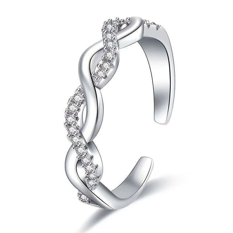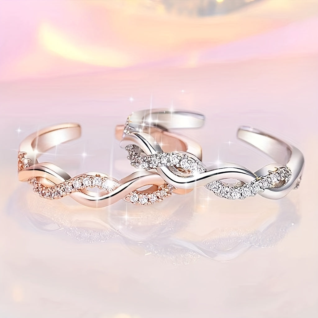 This stunning statement ring features a wave twist design with synthetic zirconia. It is made of copper and is perfect for all seasons. An ideal gift choice for any occasion.