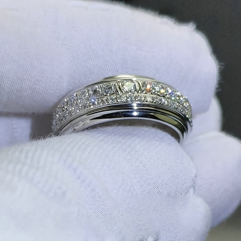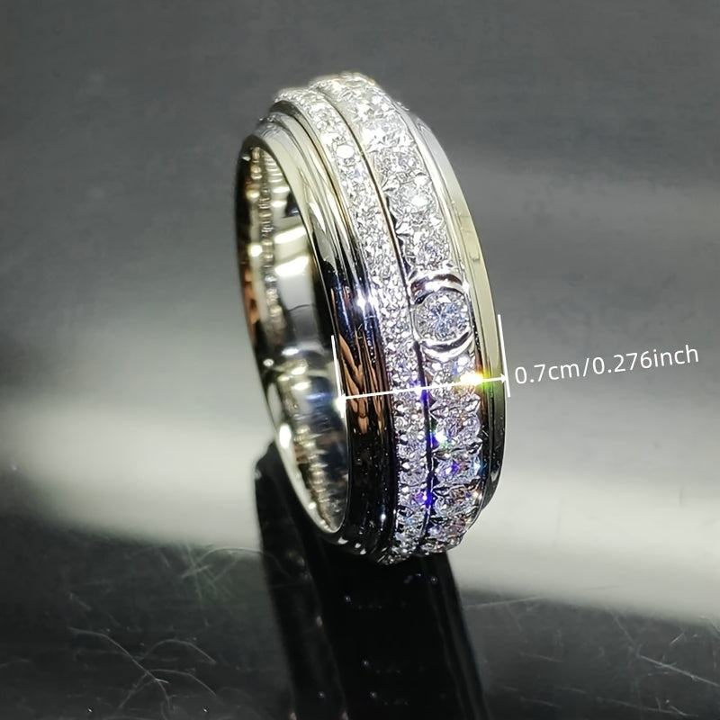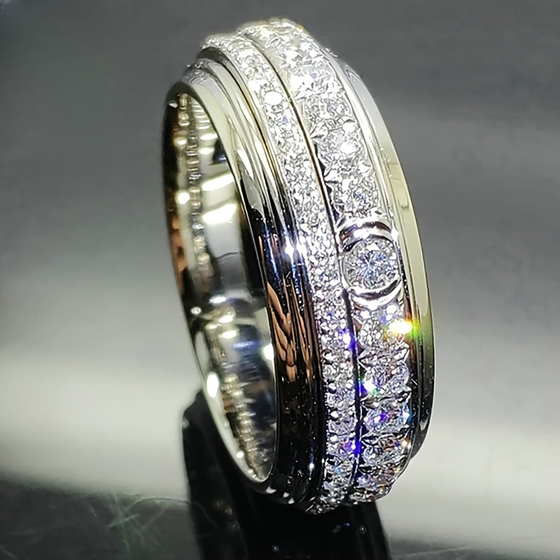 This classic wide band ring is made of copper and features synthetic zirconia inlays. It is perfect for all seasons and makes a great gift, especially for those born in April. The ring is elegantly designed with a holiday theme.
