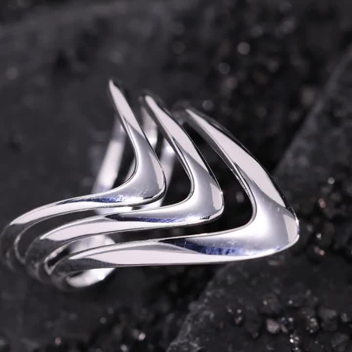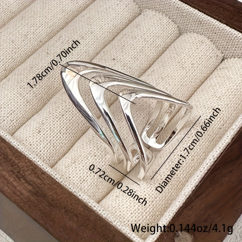 This hip hop style wide band ring is a trendy addition to any jewelry collection. Crafted from 925 silver, it features a layered open design that is adjustable for a perfect fit. The ring is lightweight, weighing approximately 2g, and comes with packaging making it an ideal choice as a gift.