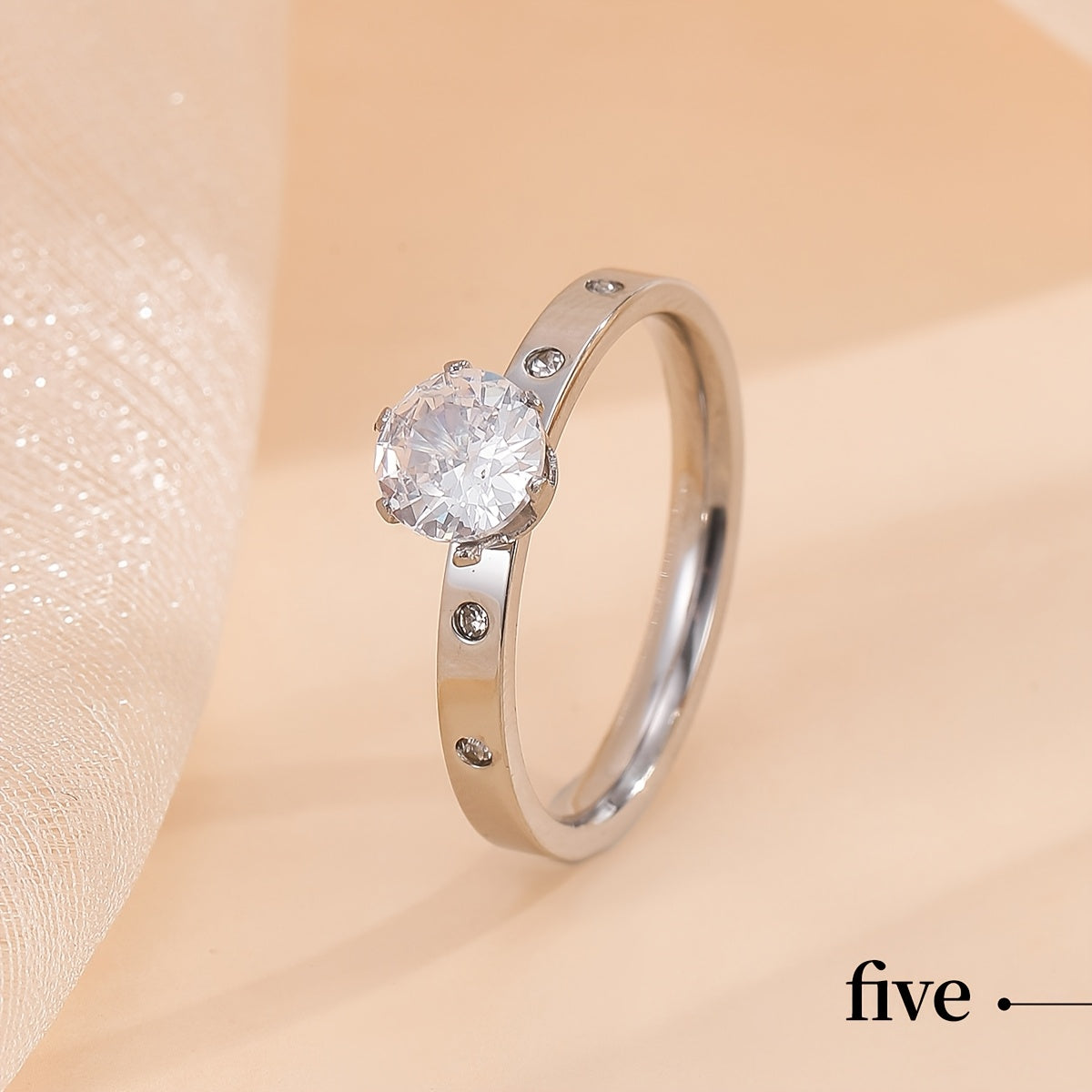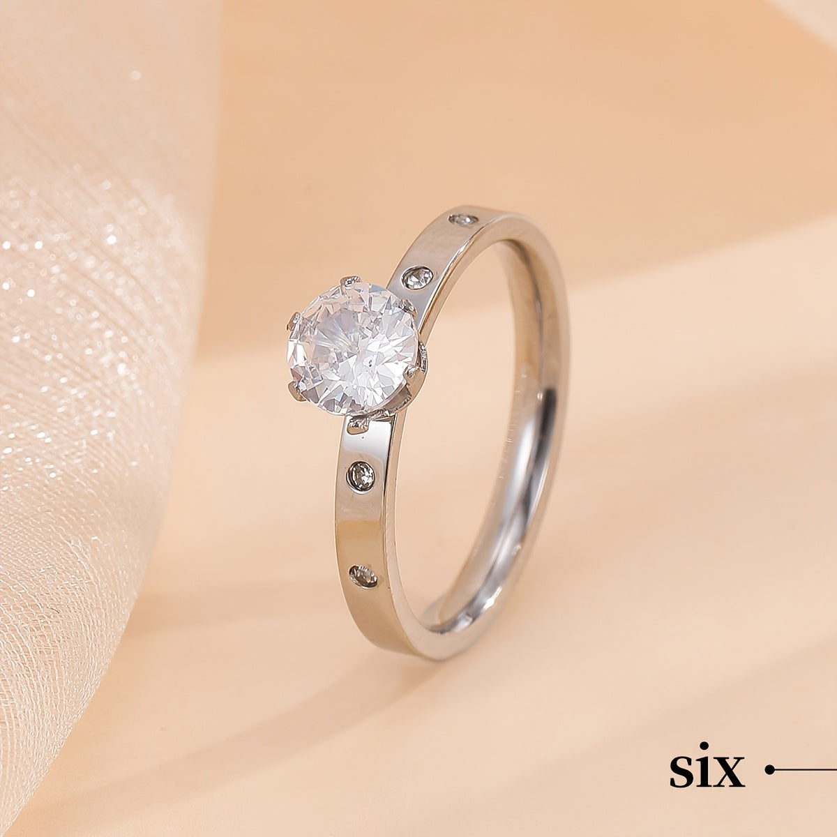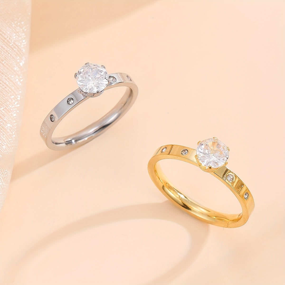 This stunning engagement ring features sparkling synthetic zirconia set in high-quality 304 stainless steel. Perfect for weddings, special occasions, and daily wear.
