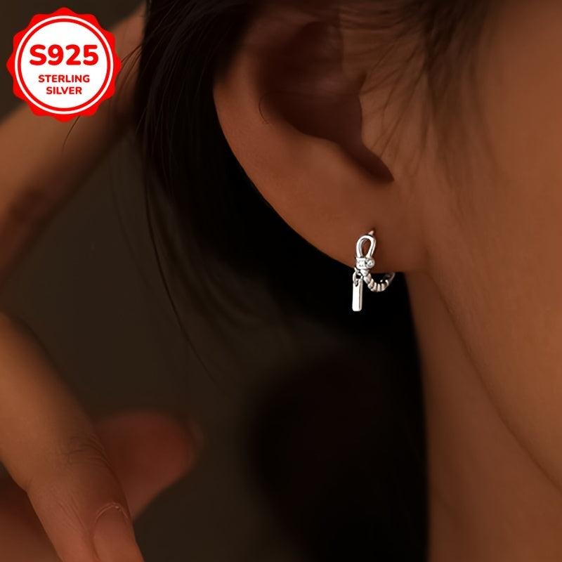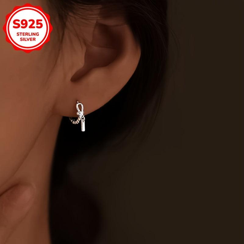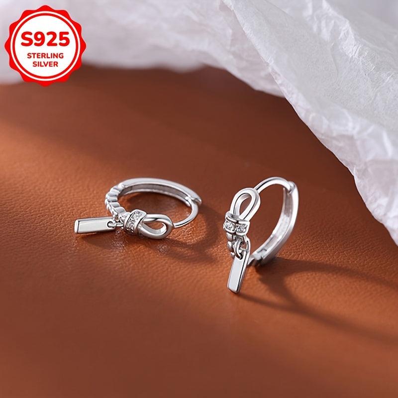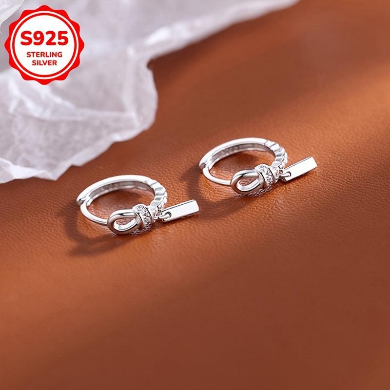 These elegant earrings feature inlaid shining zirconia and a square chain knotted design. Perfect for daily commuting and matching various outfits.