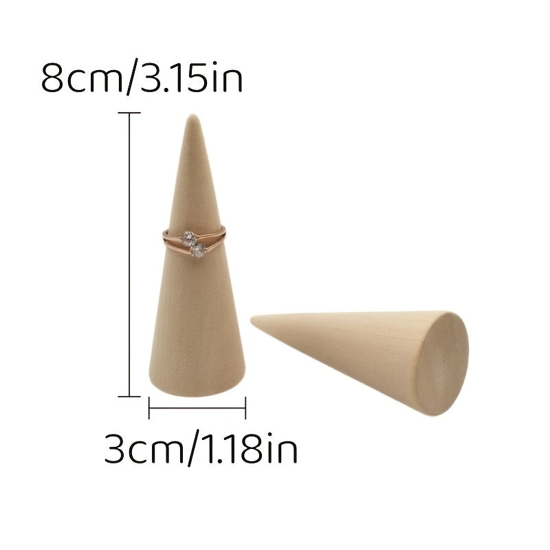 Organize and showcase your rings with this stylish wooden cone ring holder. Perfect for jewelry storage on counters or displays.