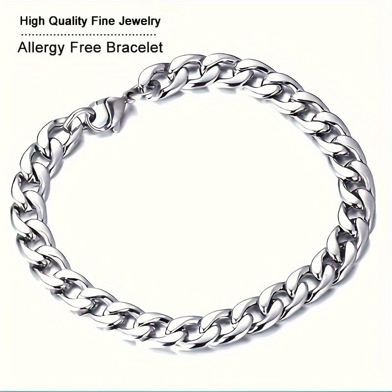 YANHUI 7mm Stainless Steel Cuban Link Bracelet