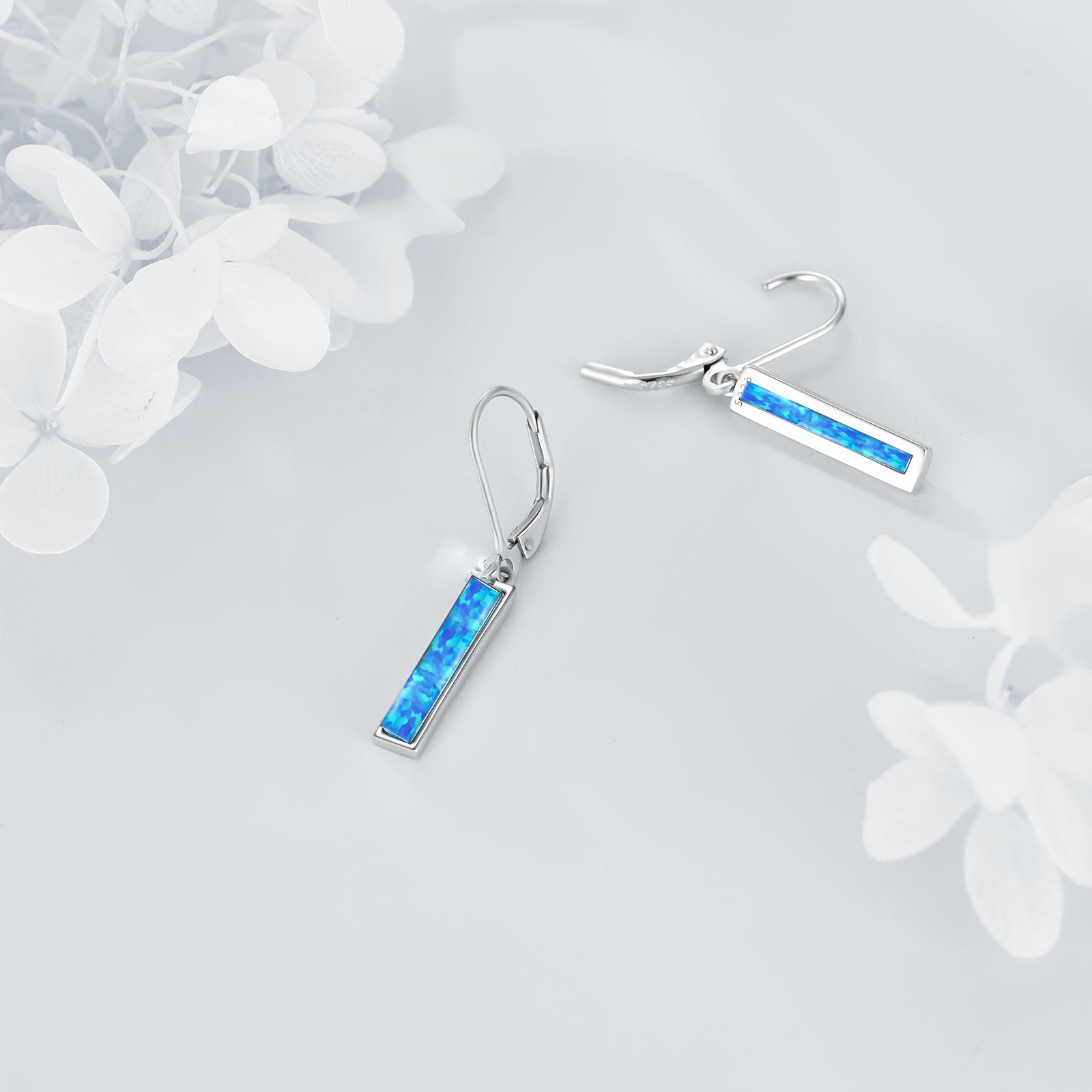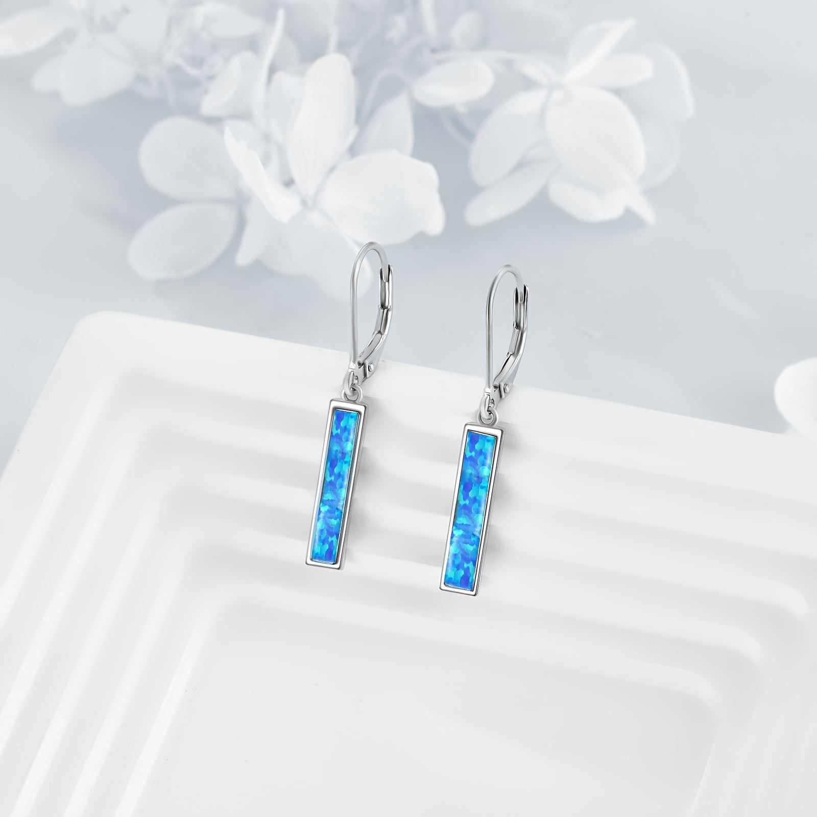 These elegant YFN earrings feature synthetic opals set in a bar design, perfect for adding a touch of sparkle to any outfit. The leverback style ensures a secure and comfortable fit. Ideal gift for women.