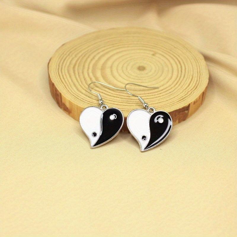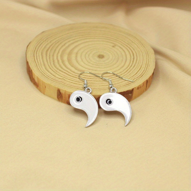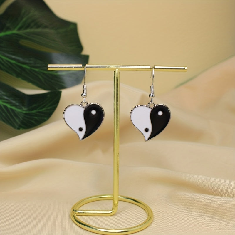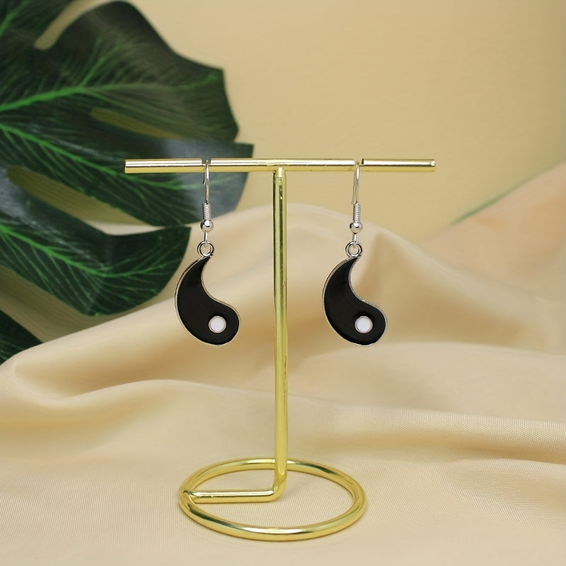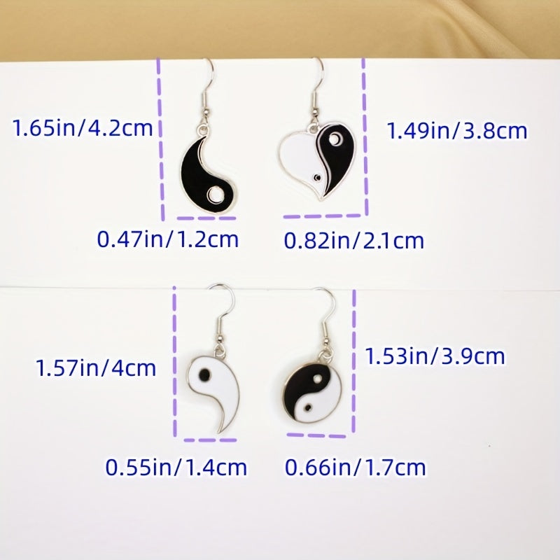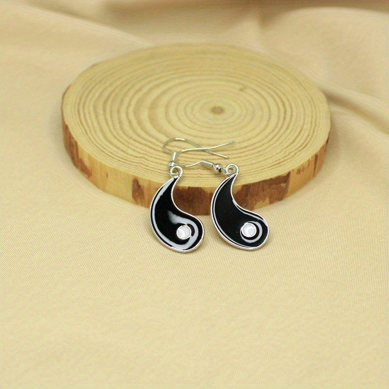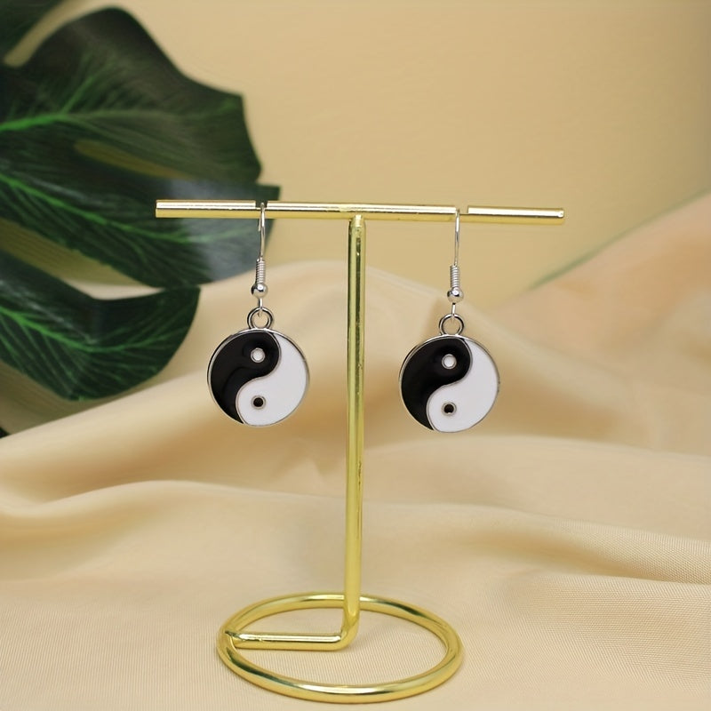 These earrings feature round enamel charms with yin and yang design, made from high-quality alloy material. The retro style adds a unique touch to any outfit.