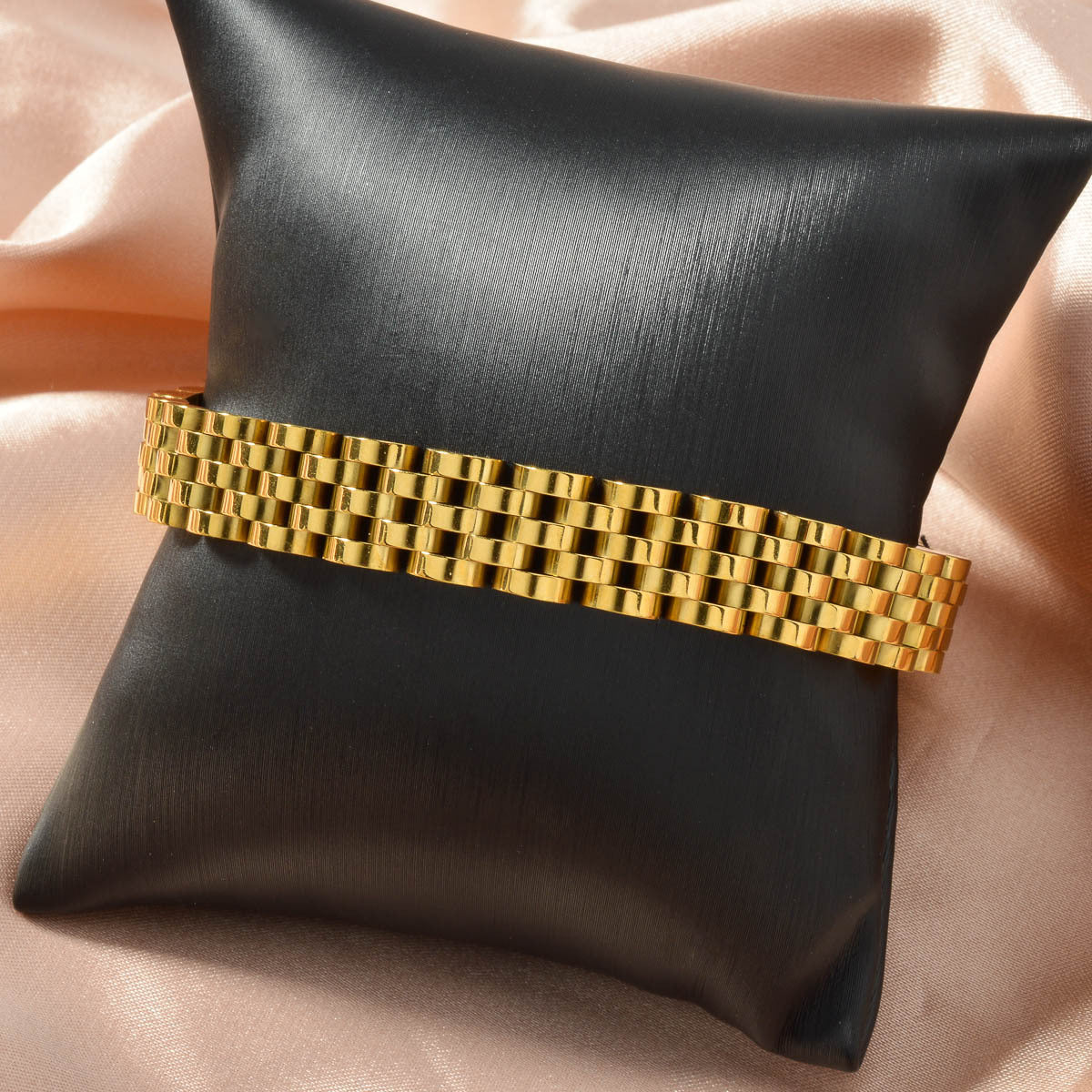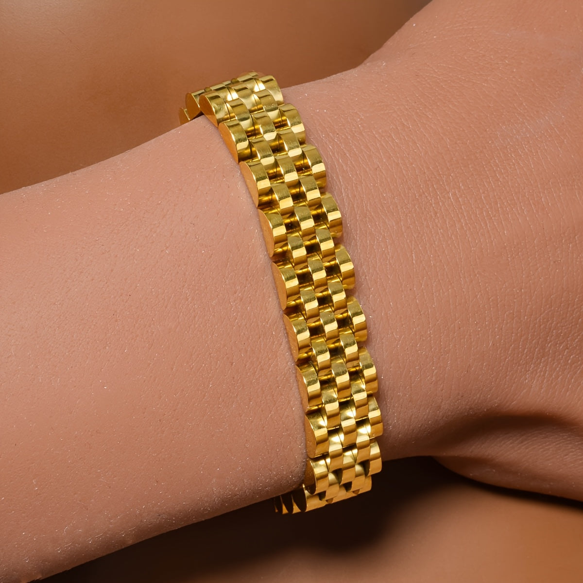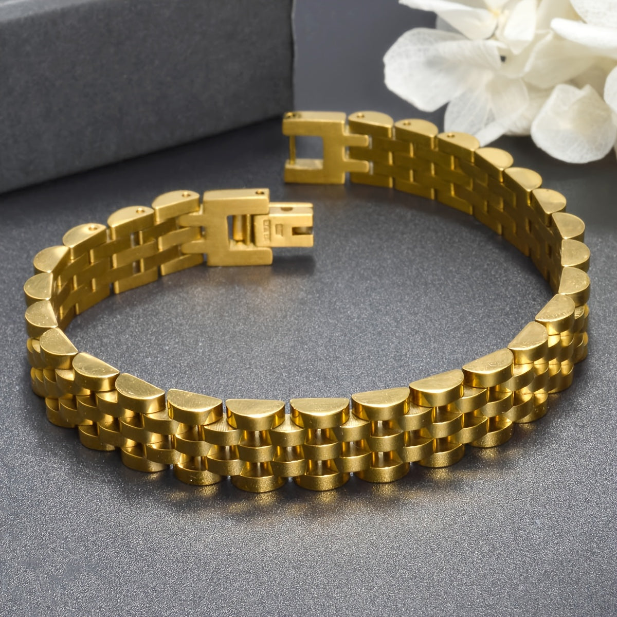 This ZEADEAR bracelet is made of 304 stainless steel with a golden tone, combining durability and fashion. Ideal for daily wear, weddings, and everyday use.