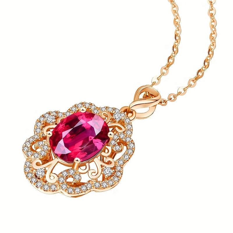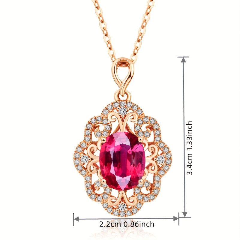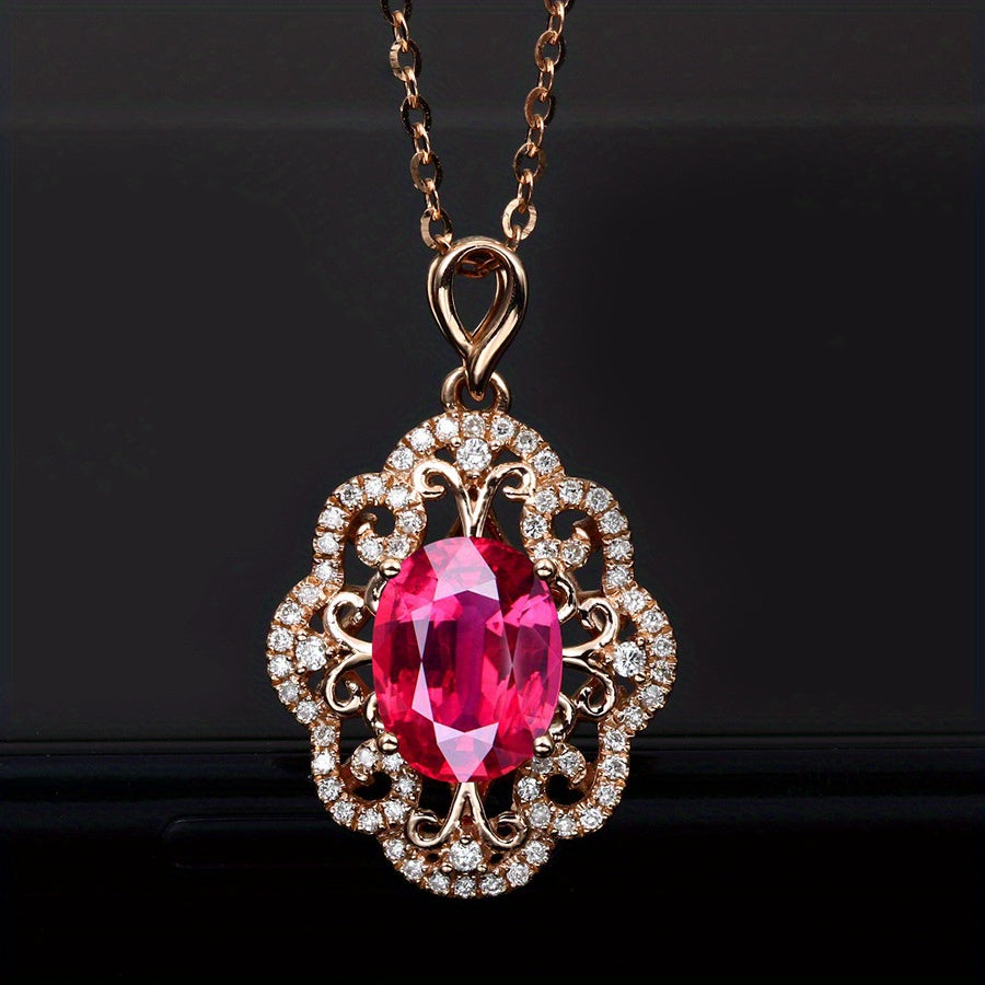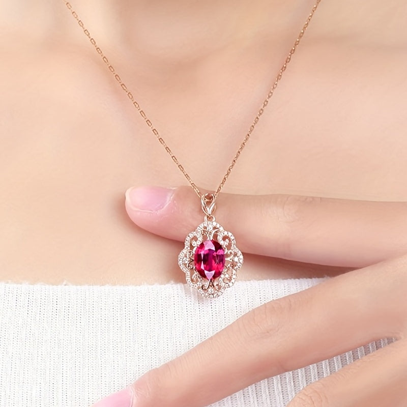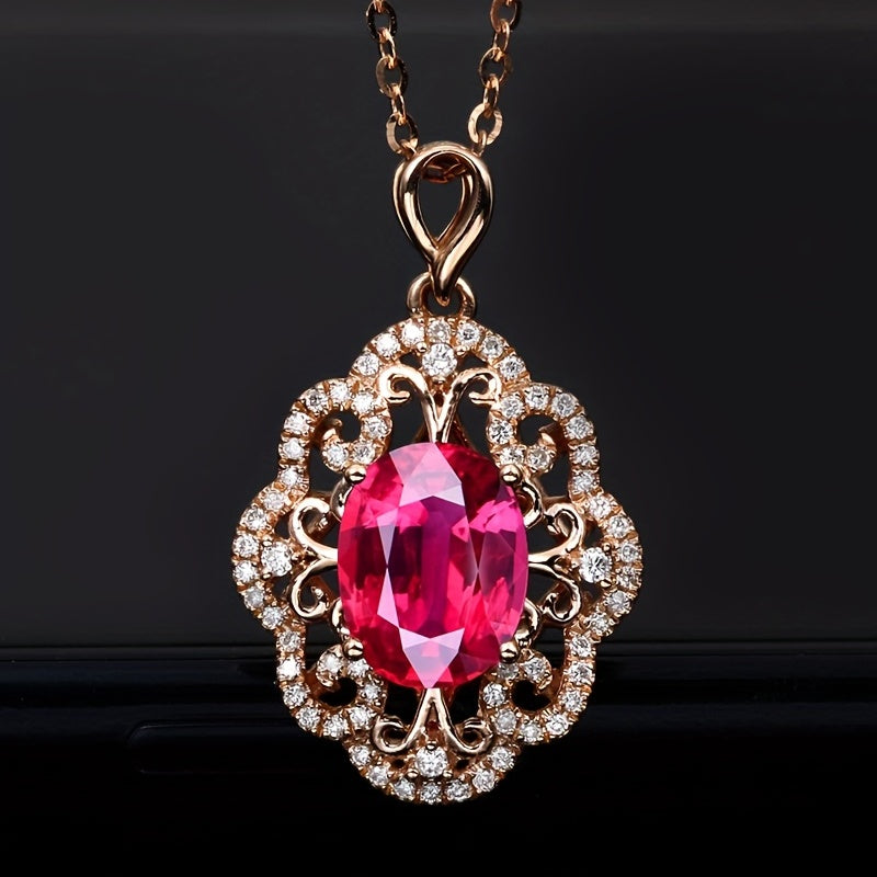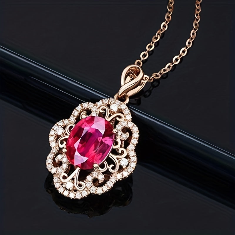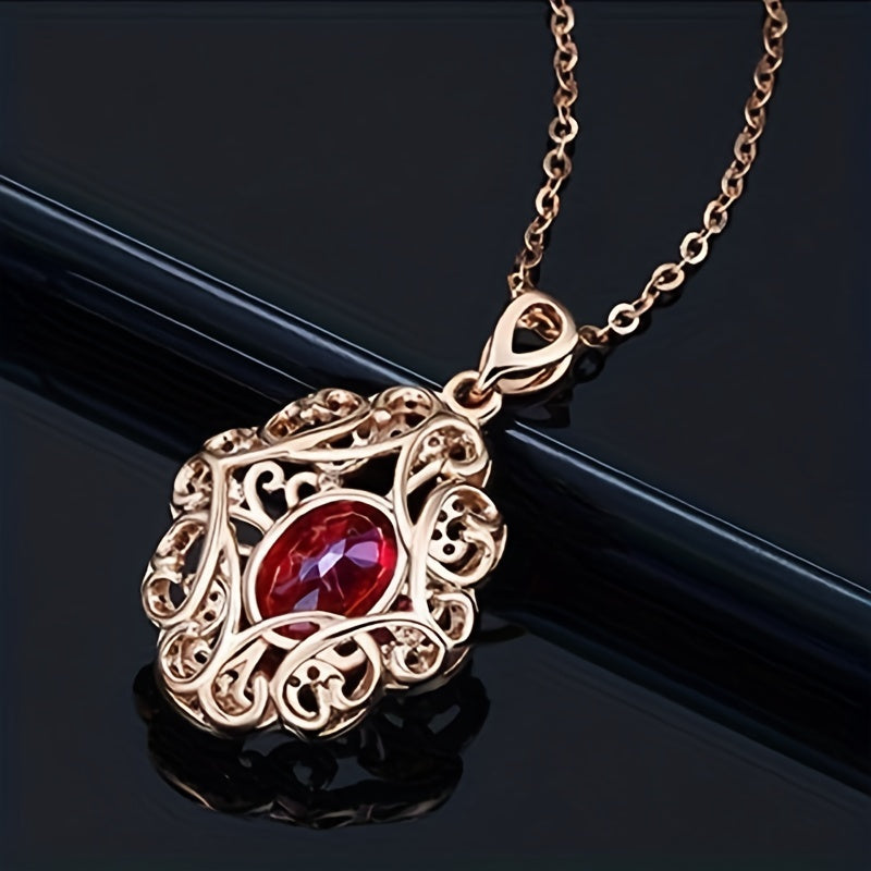 Elegant copper pendant with inlaid zircon and red tourmaline, perfect for adding a touch of glamour to any outfit.