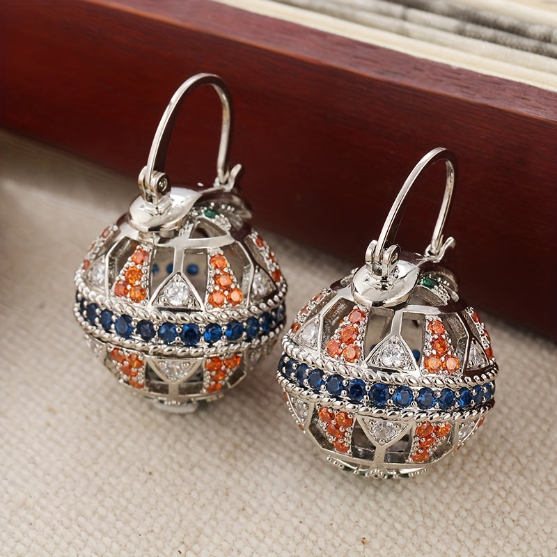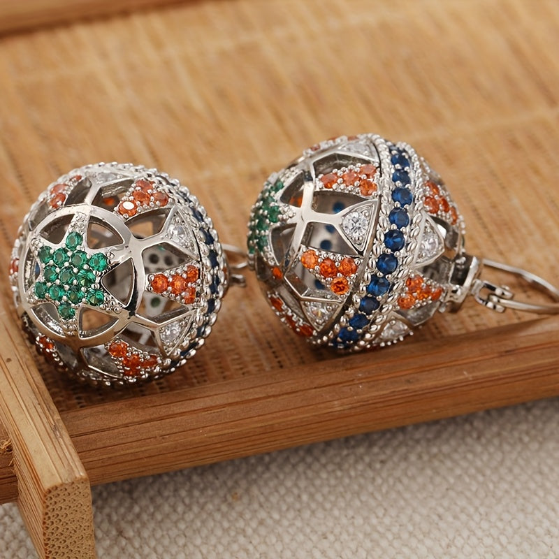Elevate your style with these fashionable earrings featuring artificial zirconia stones in a hollow circle pendant design. Perfect for adding a touch of sparkle to any outfit.