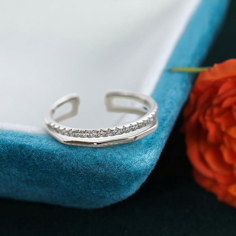 Zirconia Double Layer Toe Ring Women's Jewelry S925 Silvery Beach Open Ring