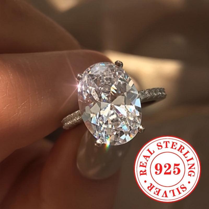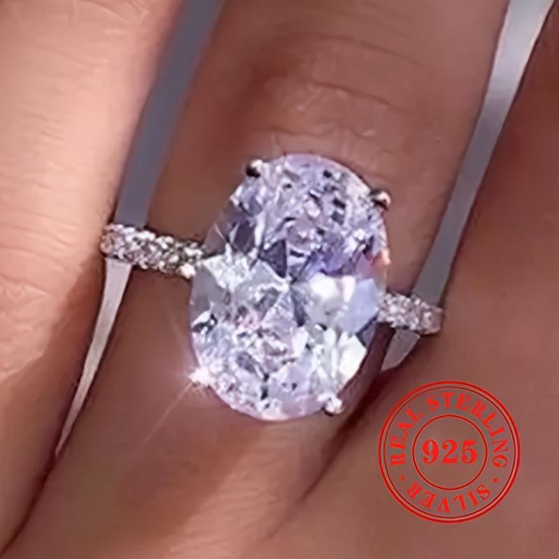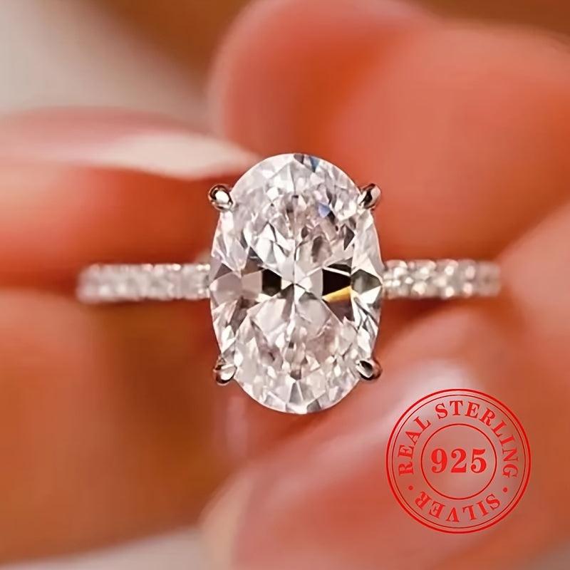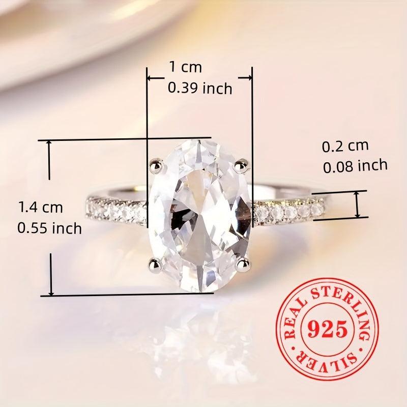 Elegant synthetic zirconia oval ring made of 925 sterling silver, perfect for engagement or wedding parties.