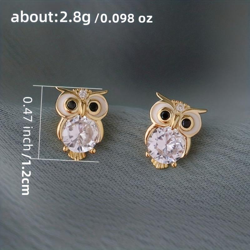 Adorable owl stud earrings made with zirconia for a stylish touch. Perfect accessory for owl lovers!