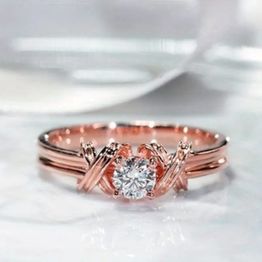 This set of copper engagement and wedding rings feature synthetic zirconia stones, perfect for daily wear or special occasions like anniversaries and birthdays.