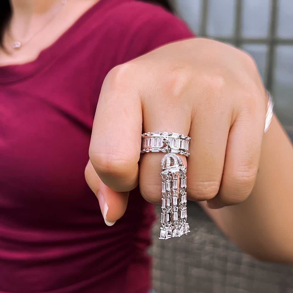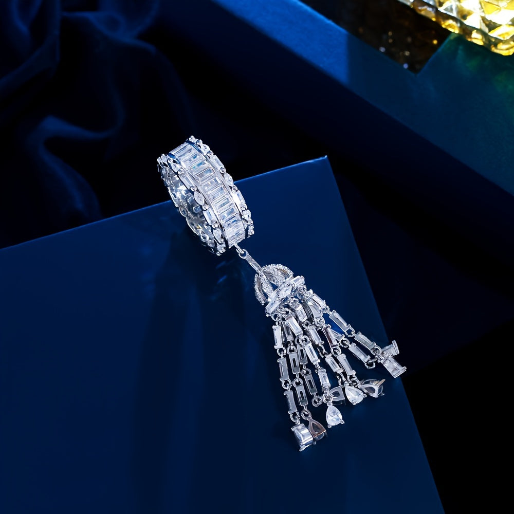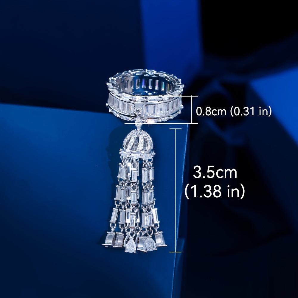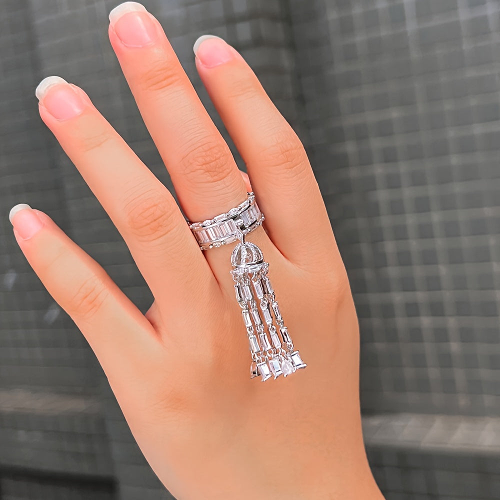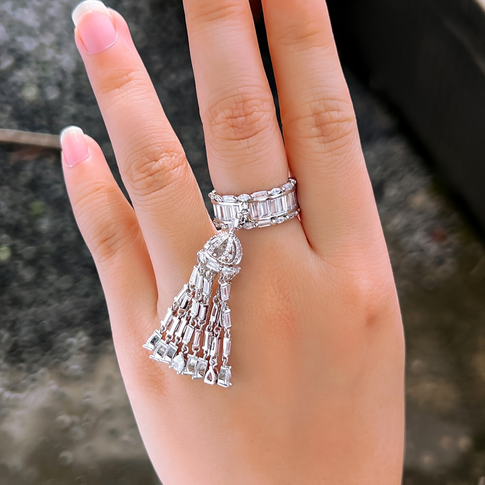 This elegant ring features a shimmering synthetic Zirconia tassel that adds a touch of sophistication to any outfit. Perfect for weddings, banquets, dates, and daily parties.