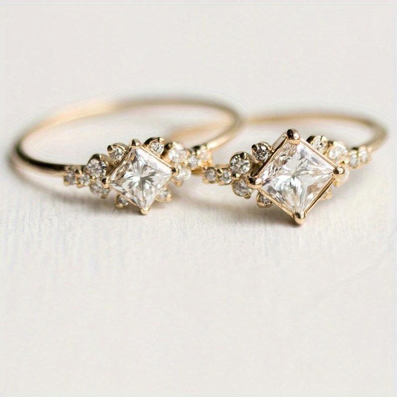 This women's ring features a synthetic zirconia square stone, making it perfect for weddings, engagements, parties, and daily wear. It's an ideal jewelry gift for any occasion.