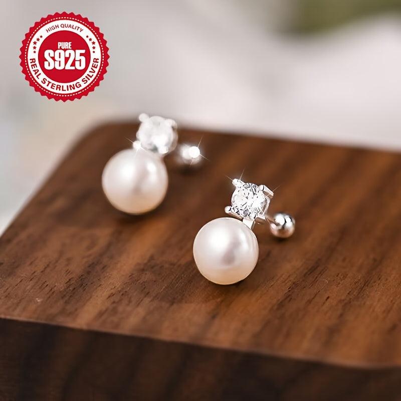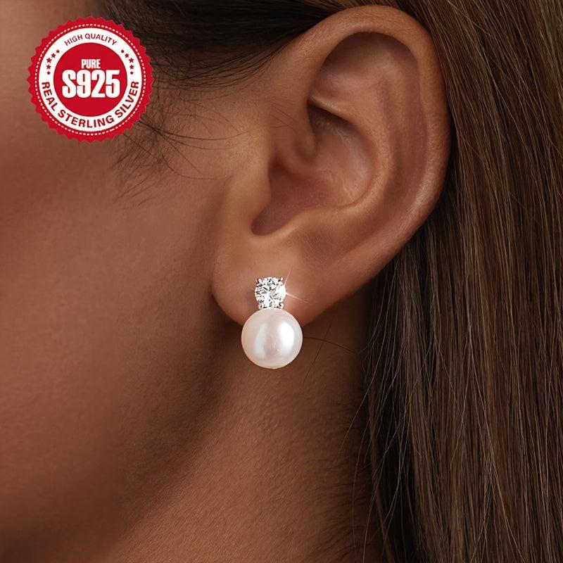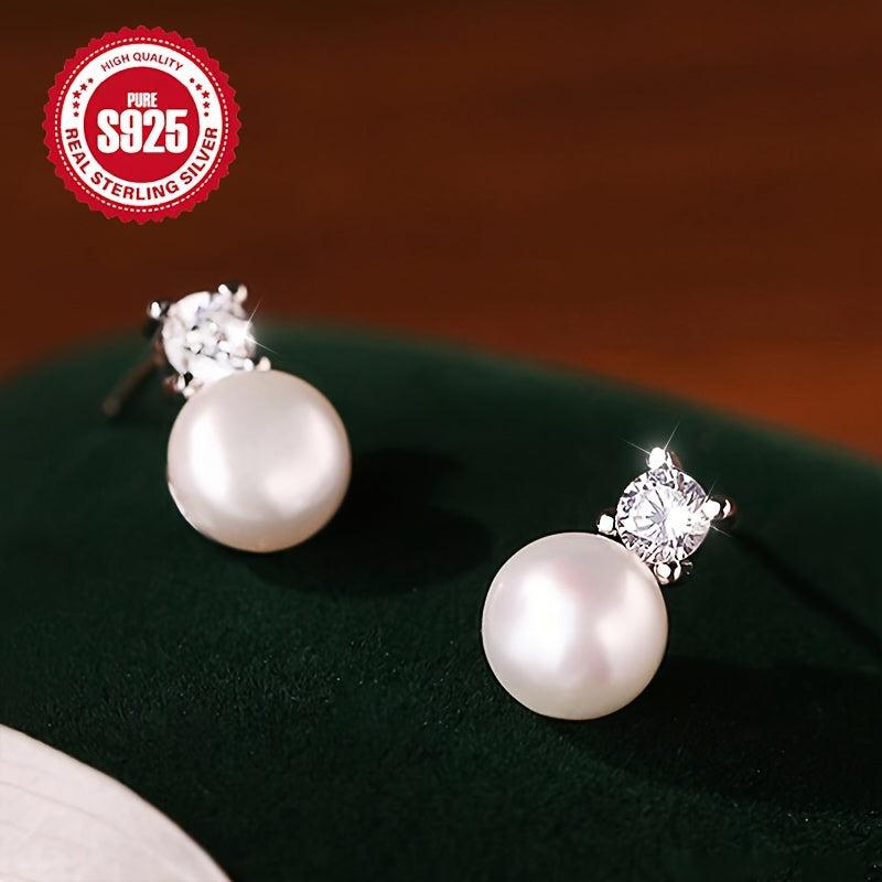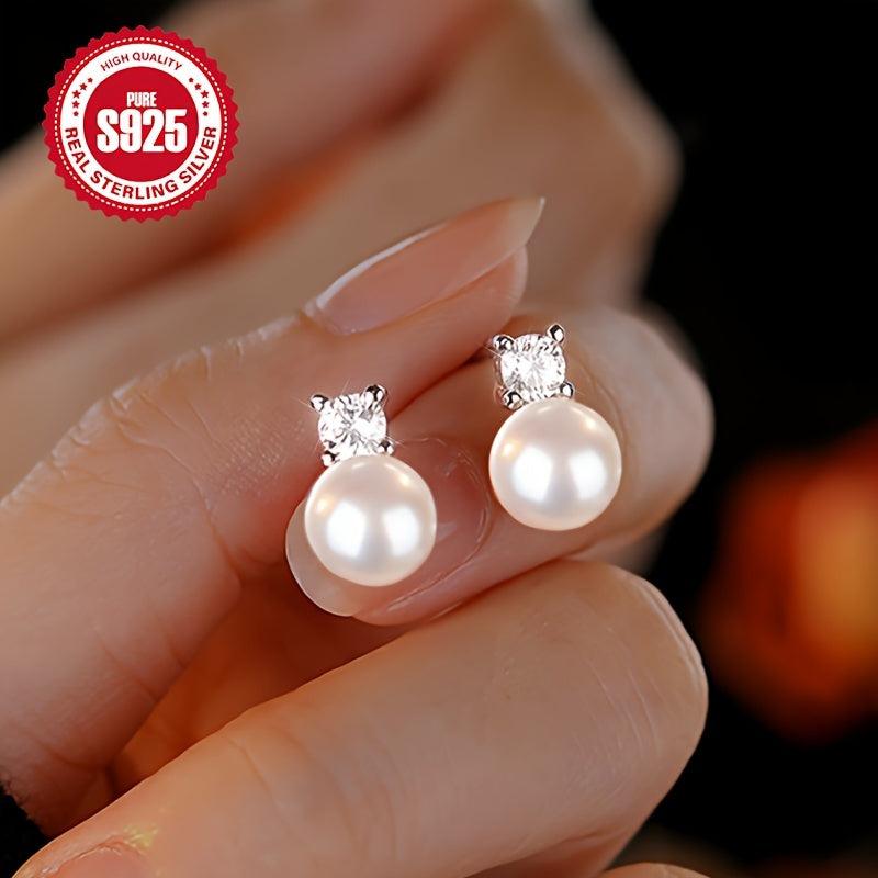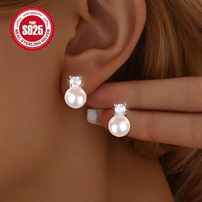 Zirconium Pearl Earrings - S925 Silver Blingbling French Retro Earrings