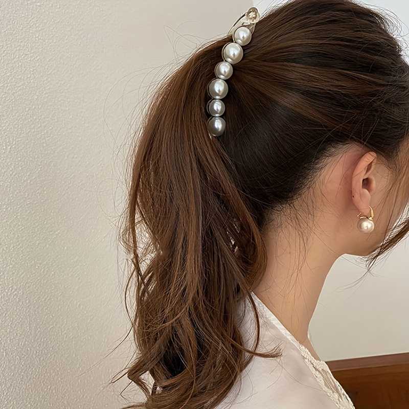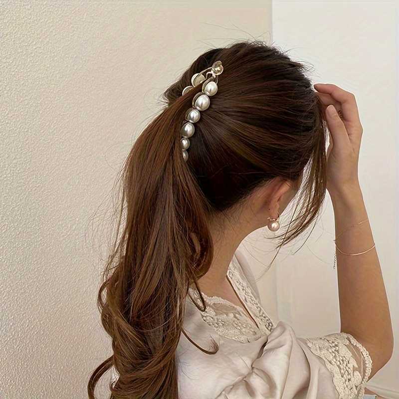 Pince banane élégante en fausses perles, accessoire de cheveux chic en acrylique pour femmes