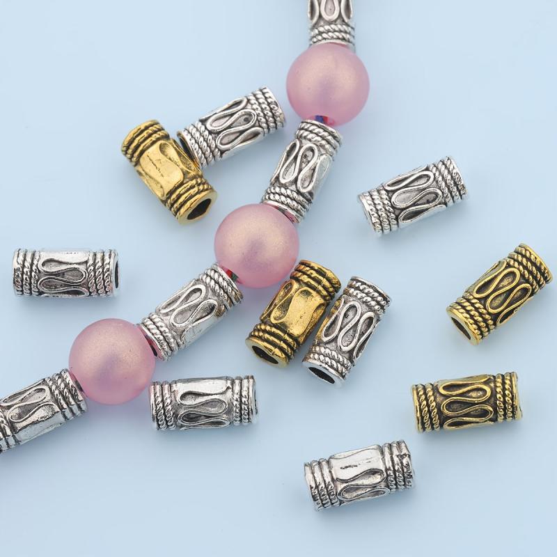 Vintage Flower Cylinder Loose Spacer Beads. Straight Twist Edge Stringing Beads. Old Round design.