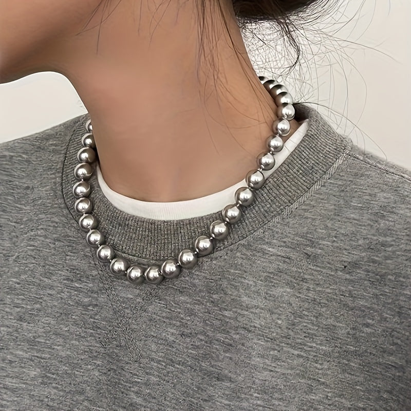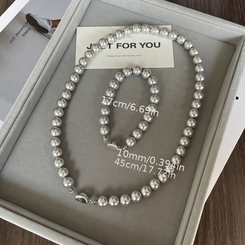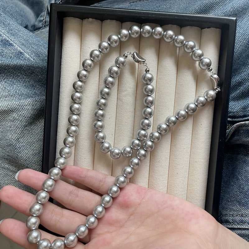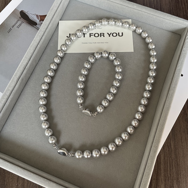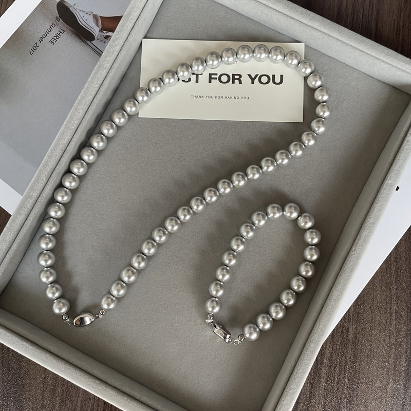This two-piece set features a strong light gray round bead necklace and bracelet, perfect for daily wear or as a gift. Versatile and stylish, these accessories add a touch of elegance to any outfit.