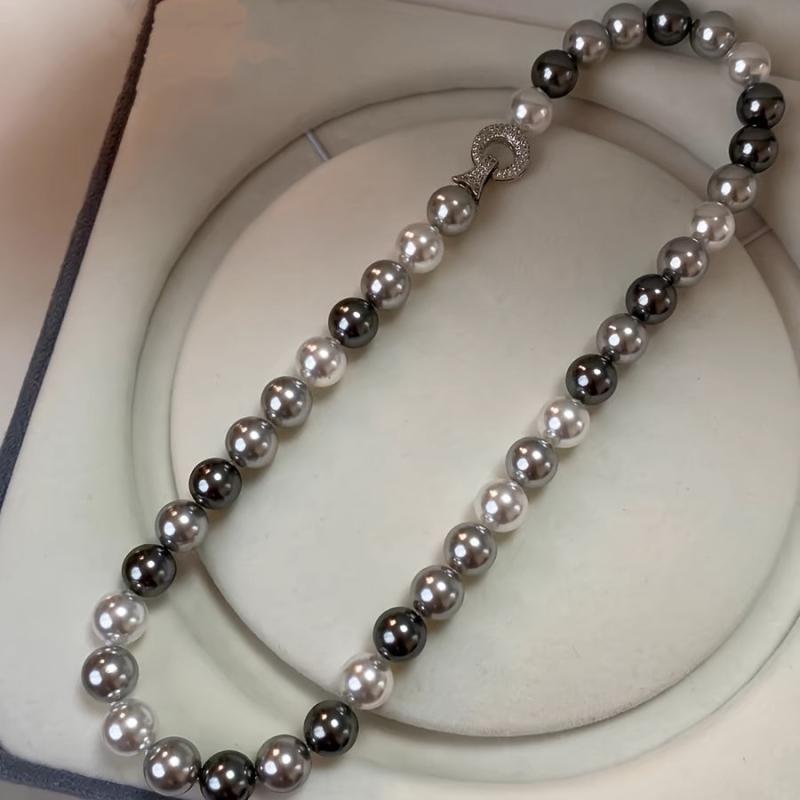 Elevate your style with this elegant mixed shell pearl necklace. Perfect for the fall and winter seasons, this necklace adds a touch of sophistication to your everyday look.