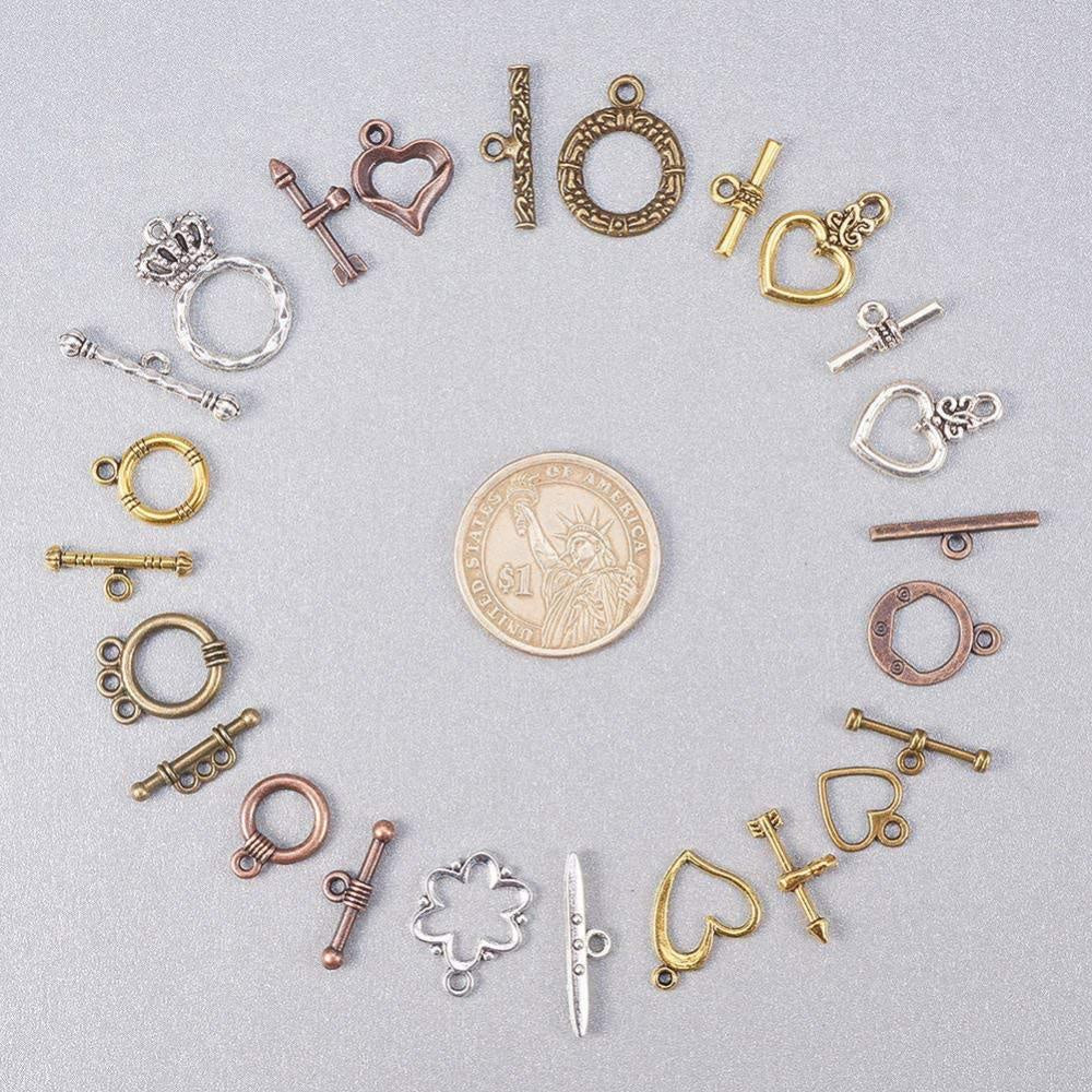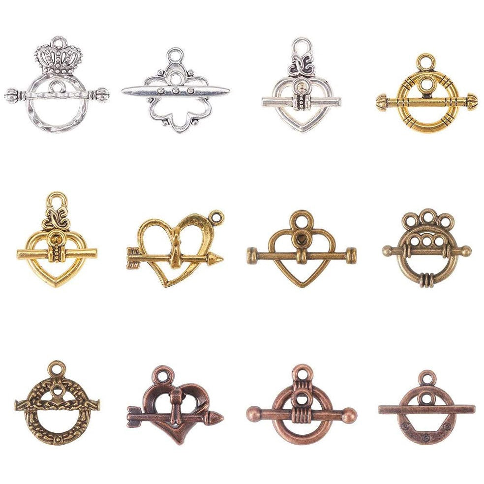 This set includes 120 sets of T bar clasps in 12 styles and 4 colors, perfect for DIY jewelry making. Made of durable alloy material.