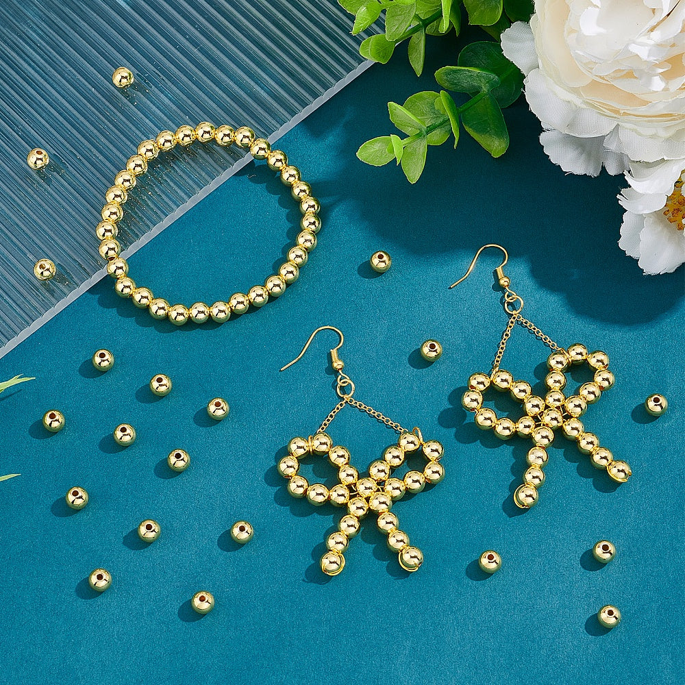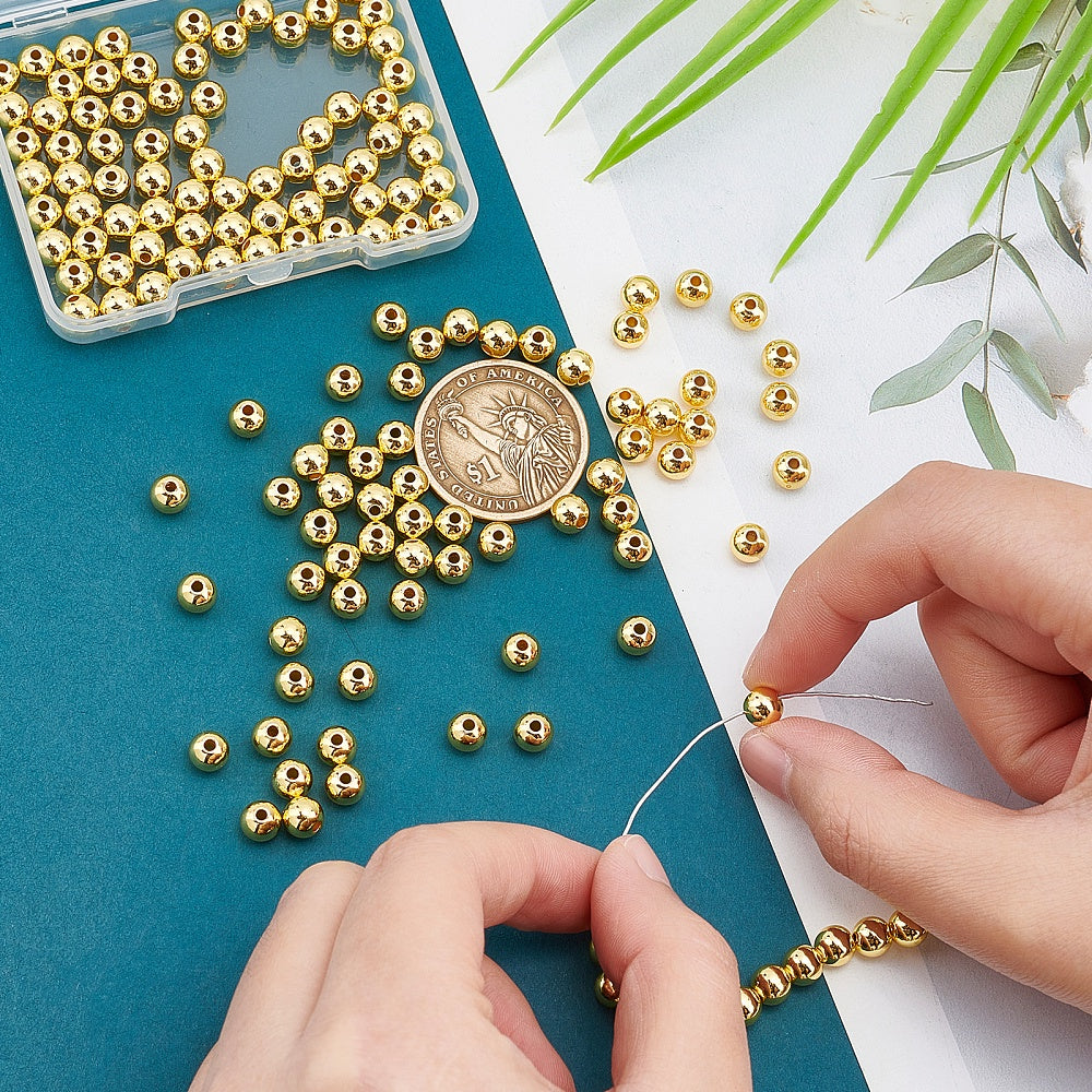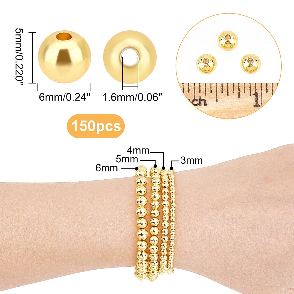 Get this pack of 150 golden brass beads to enhance your DIY jewelry creations. These 6mm round smooth spacer beads are perfect for necklaces, bracelets, and earrings.