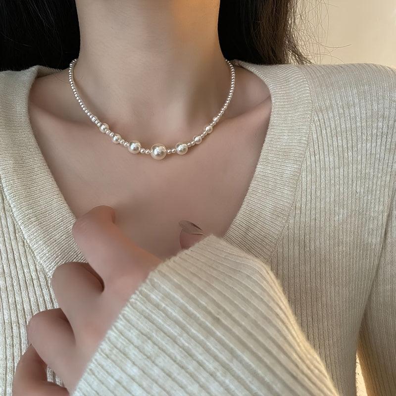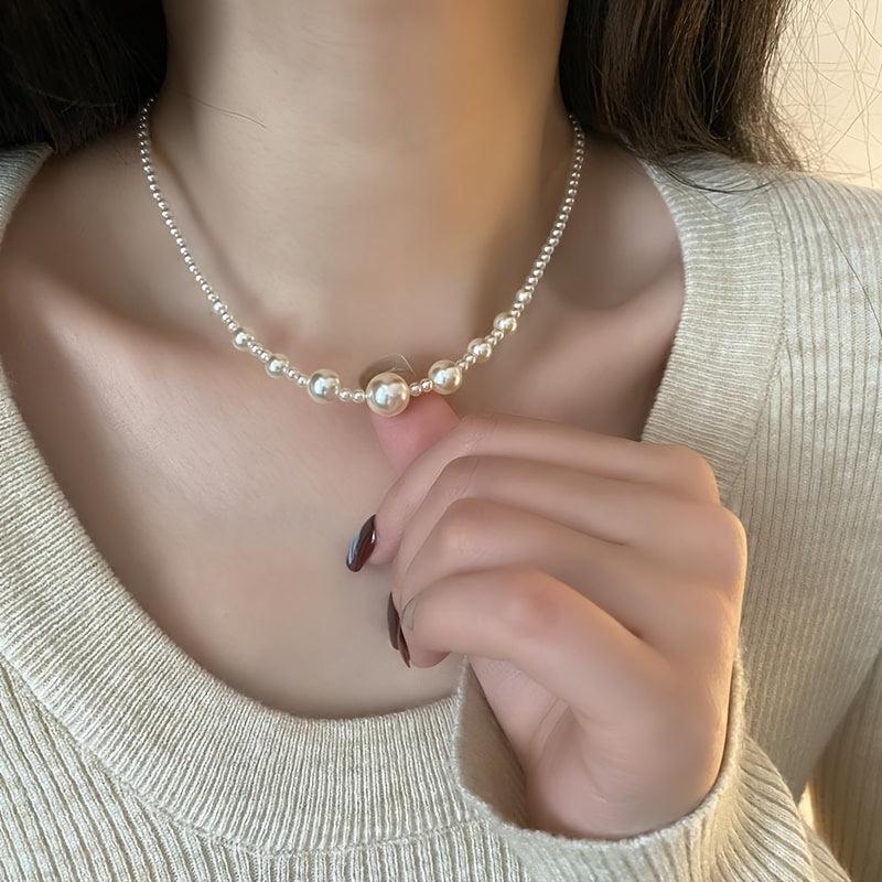 Elevate your casual attire with this elegant freshwater pearls necklace. The bohemian minimalist design features round pearls for a stylish look.